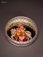 - This 8-inch German silver tray showcases a digitally printed Krishna Cow design, combining elegance with functionality.
