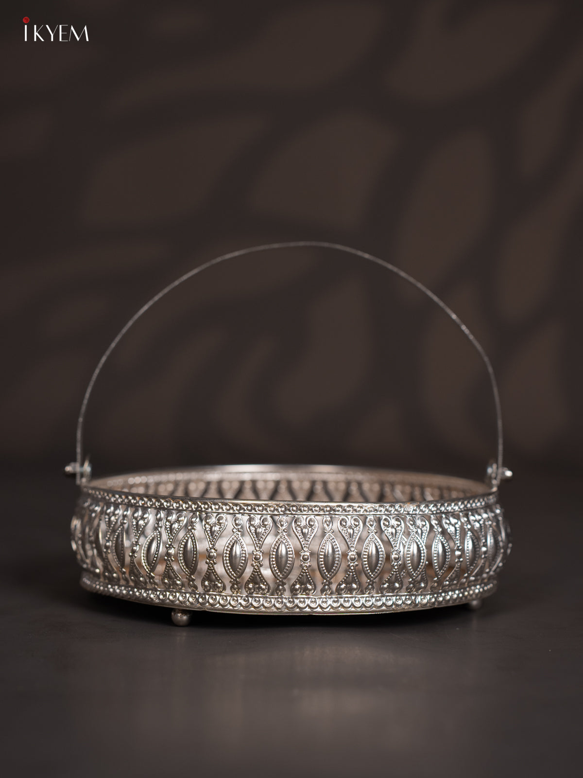 - The sturdy handle makes it perfect for serving or displaying, while its versatile design transforms it into an elegant basket for storage and organization.
