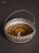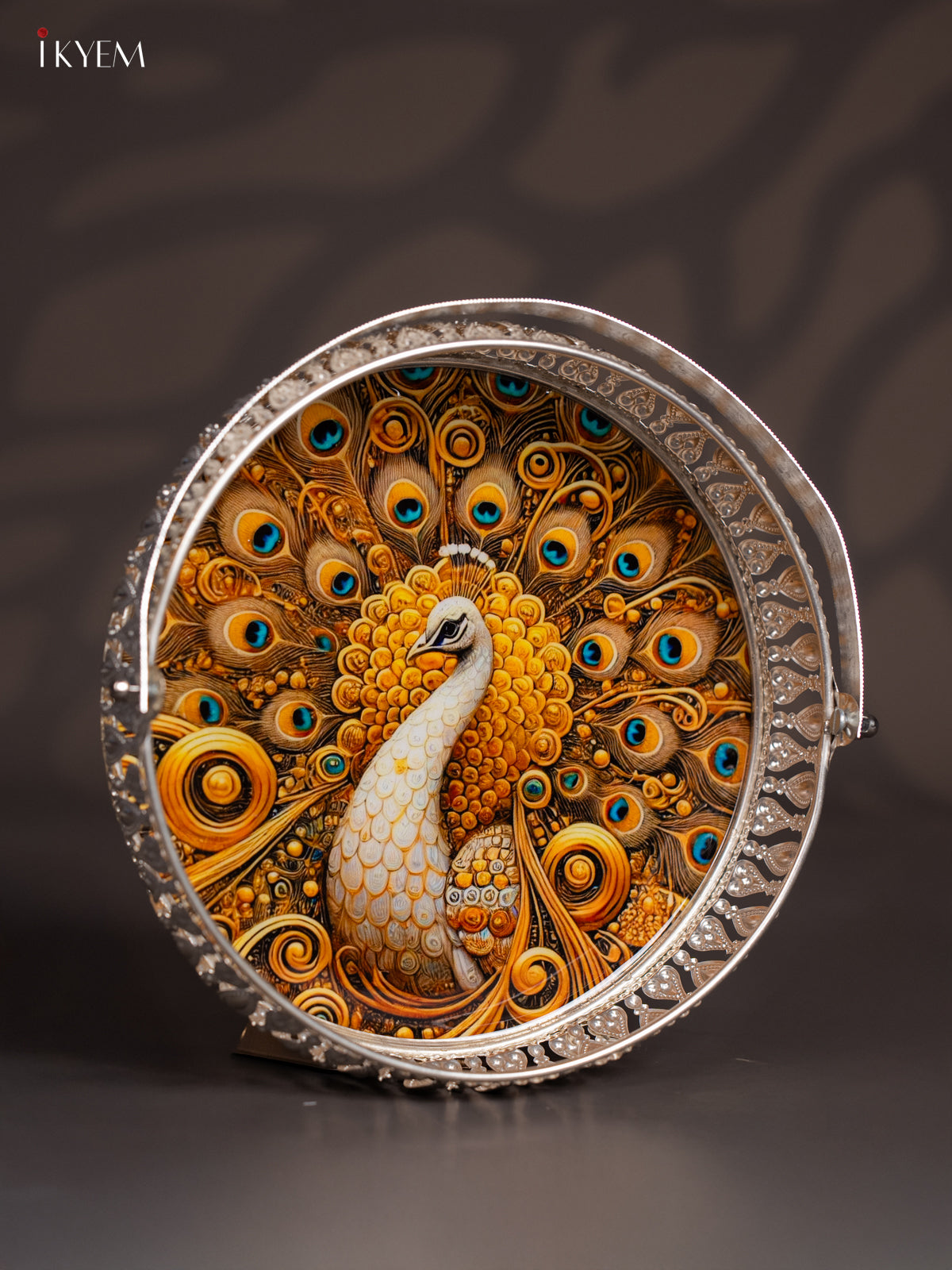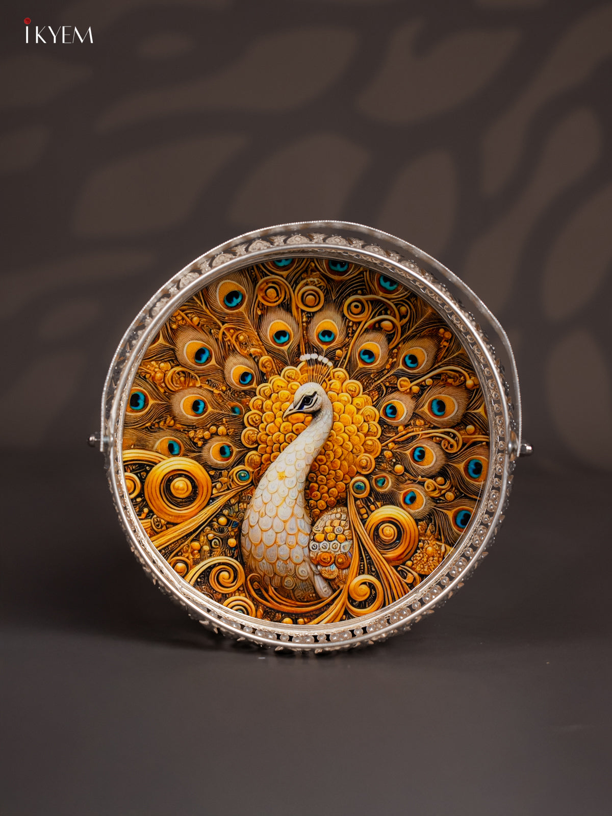 Digital Printed German Silver Tray With Handle - Peacock Brown - KJ31211