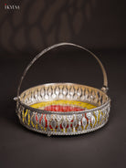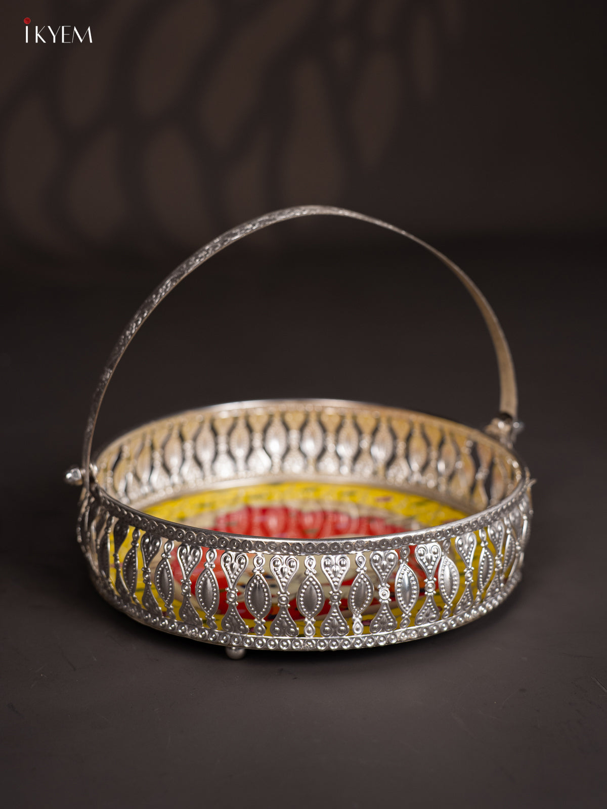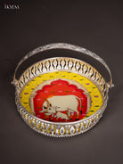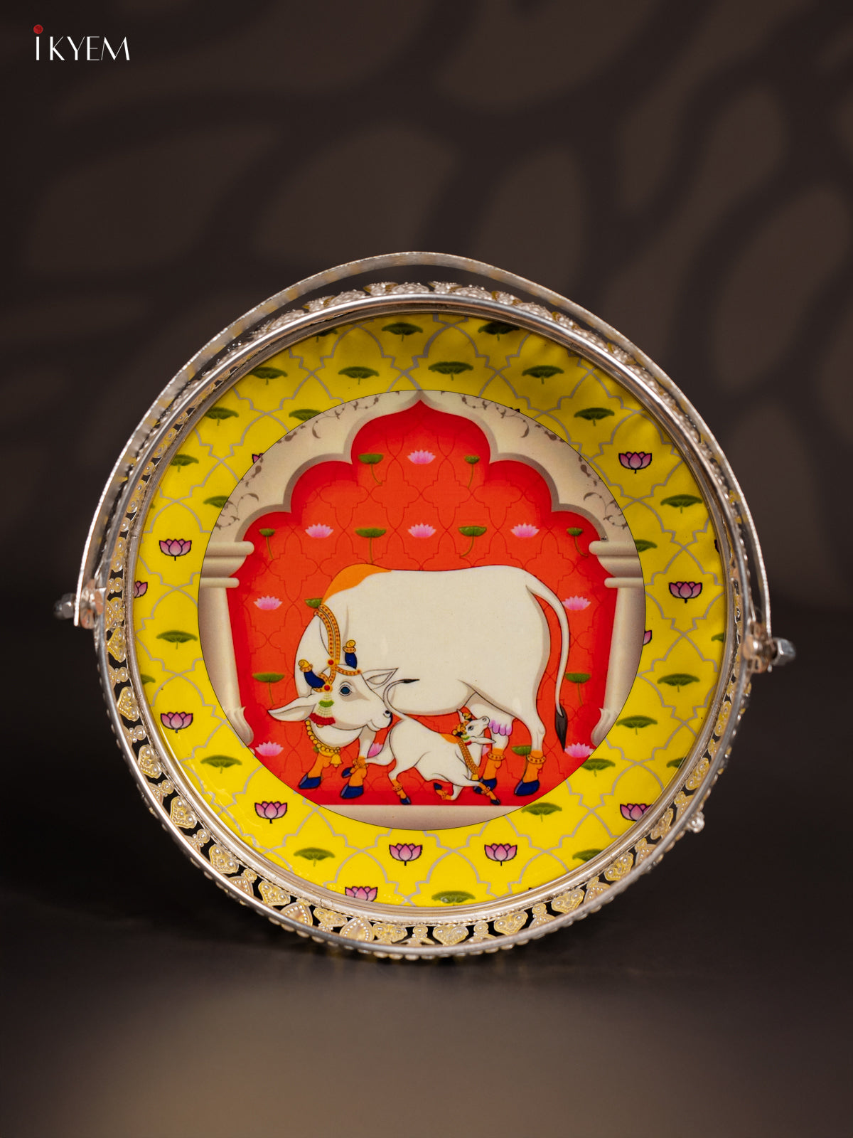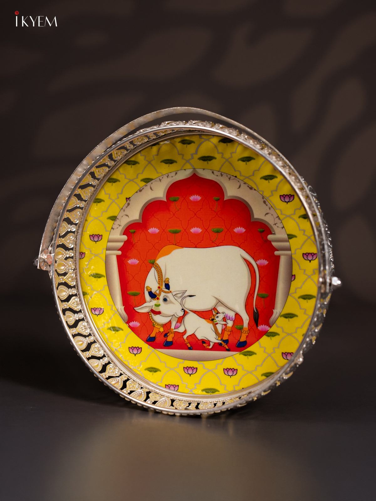 Digital Printed German Silver Tray With Handle - Cow&calf Yellow with orange