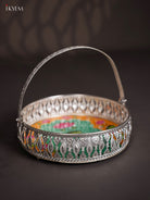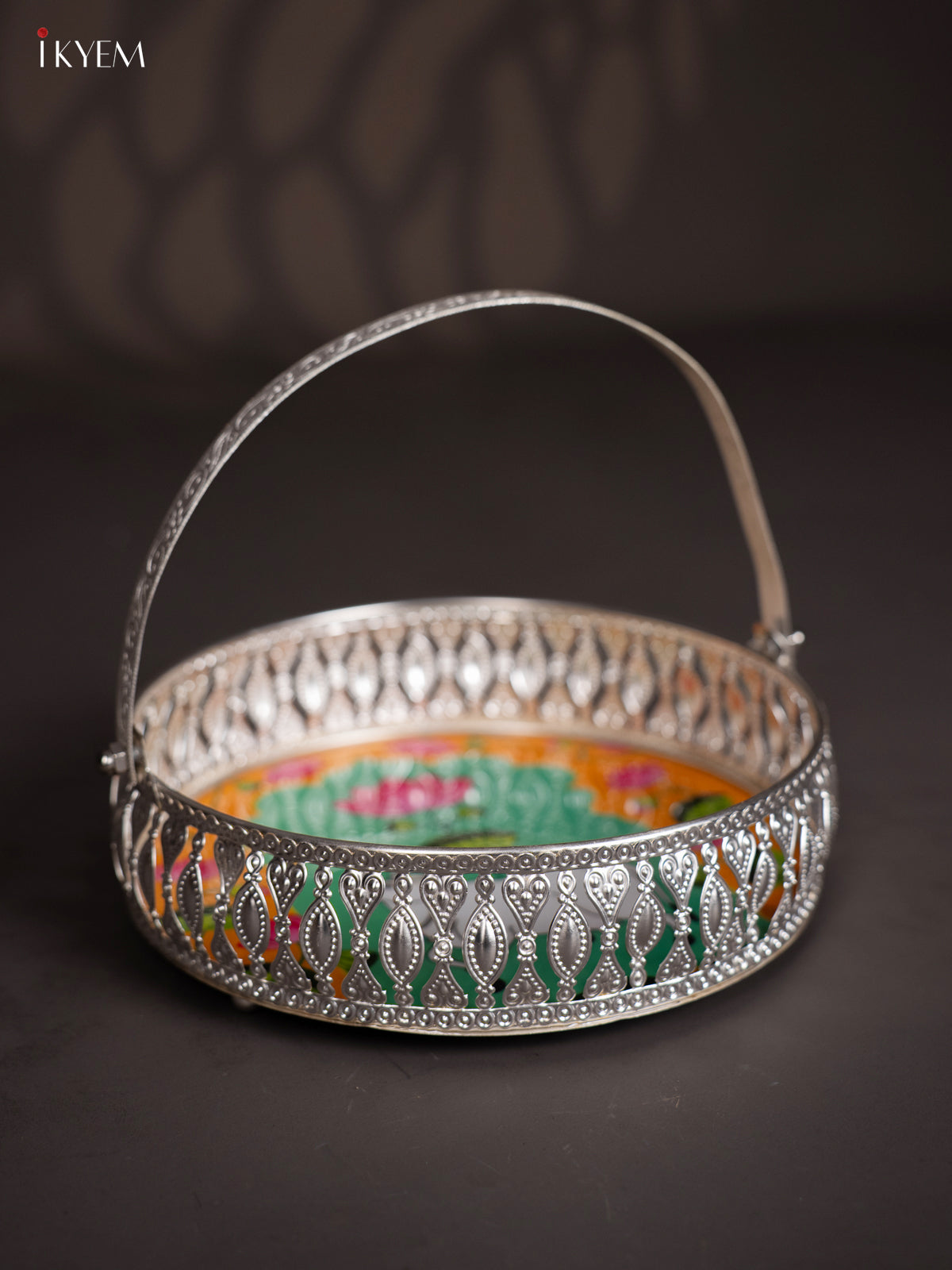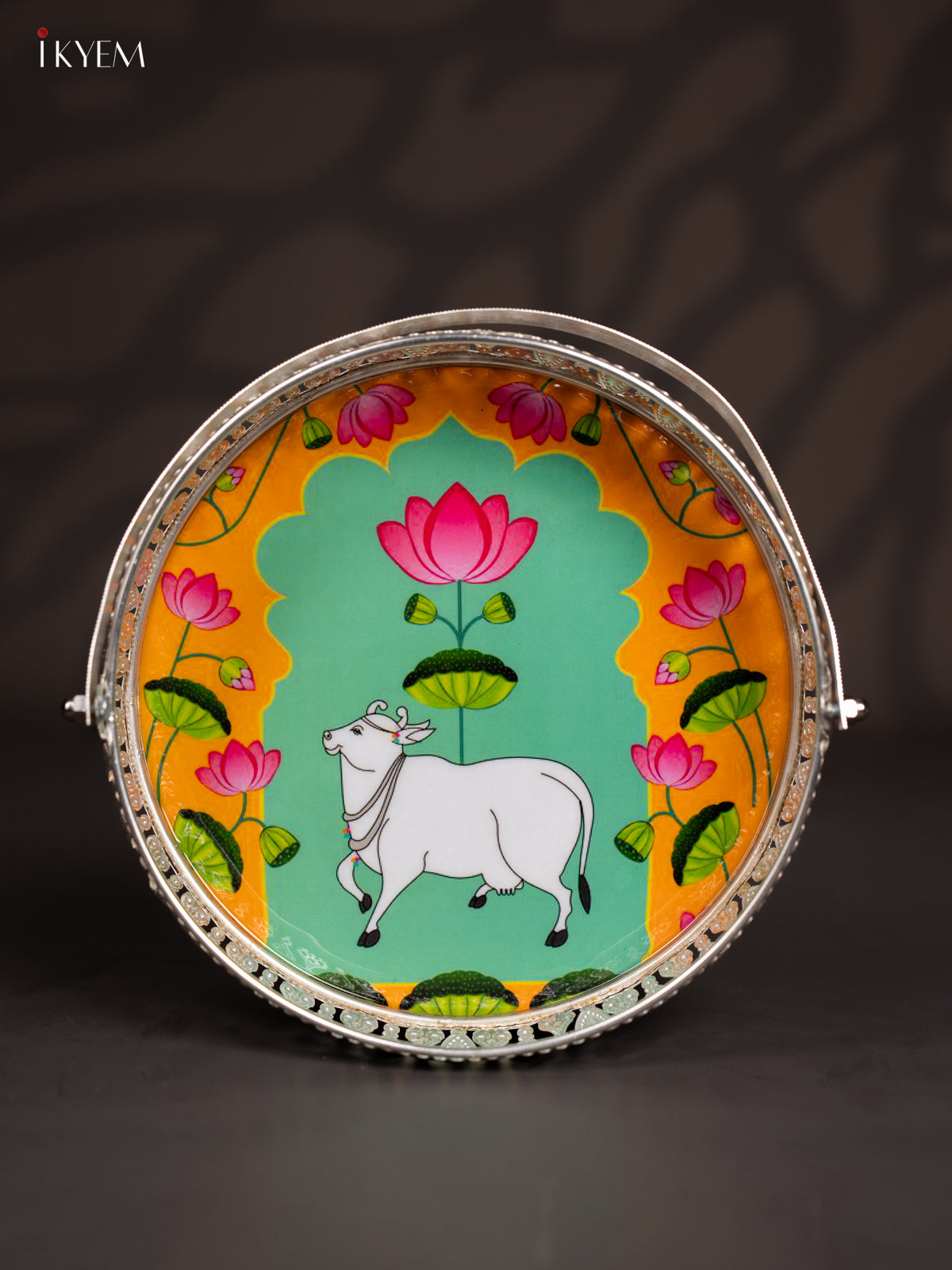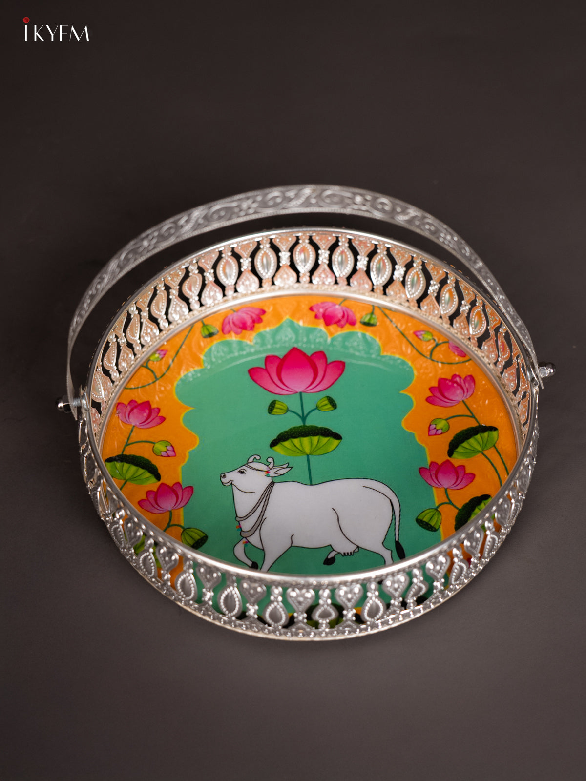 Digital Printed German Silver Tray With Handle - Cow masted with green