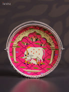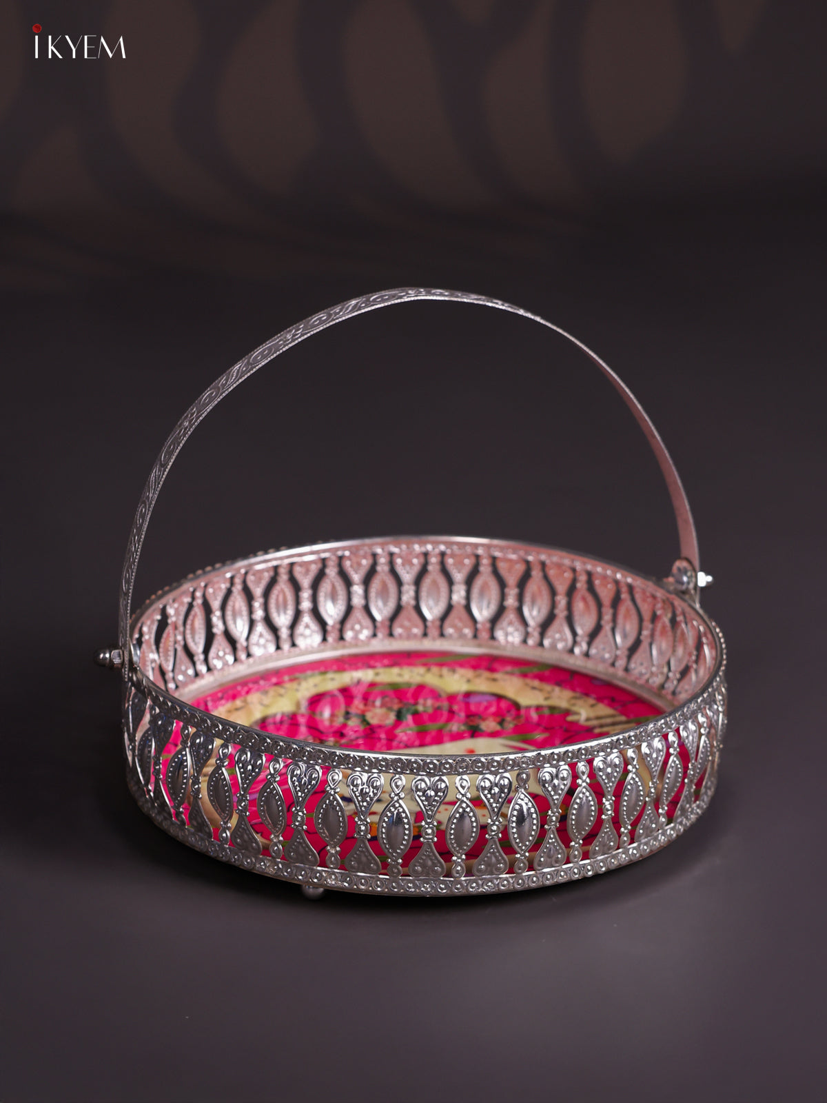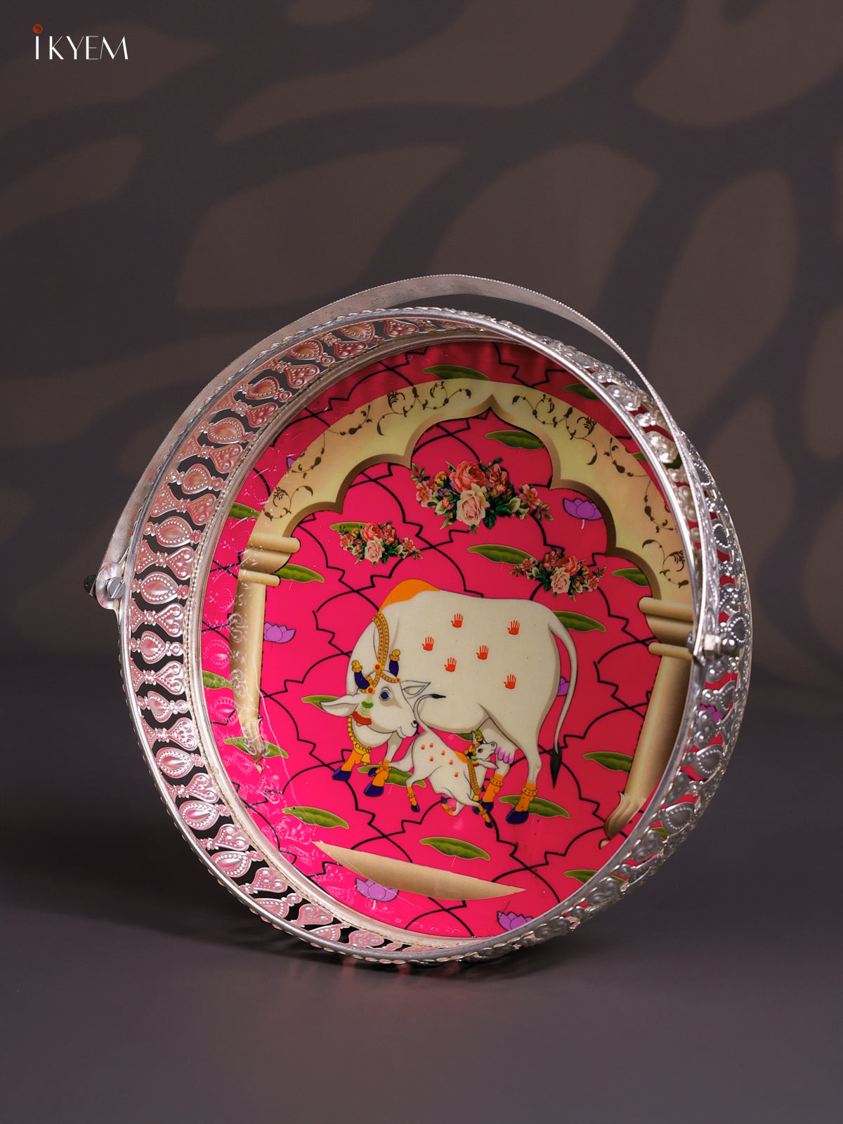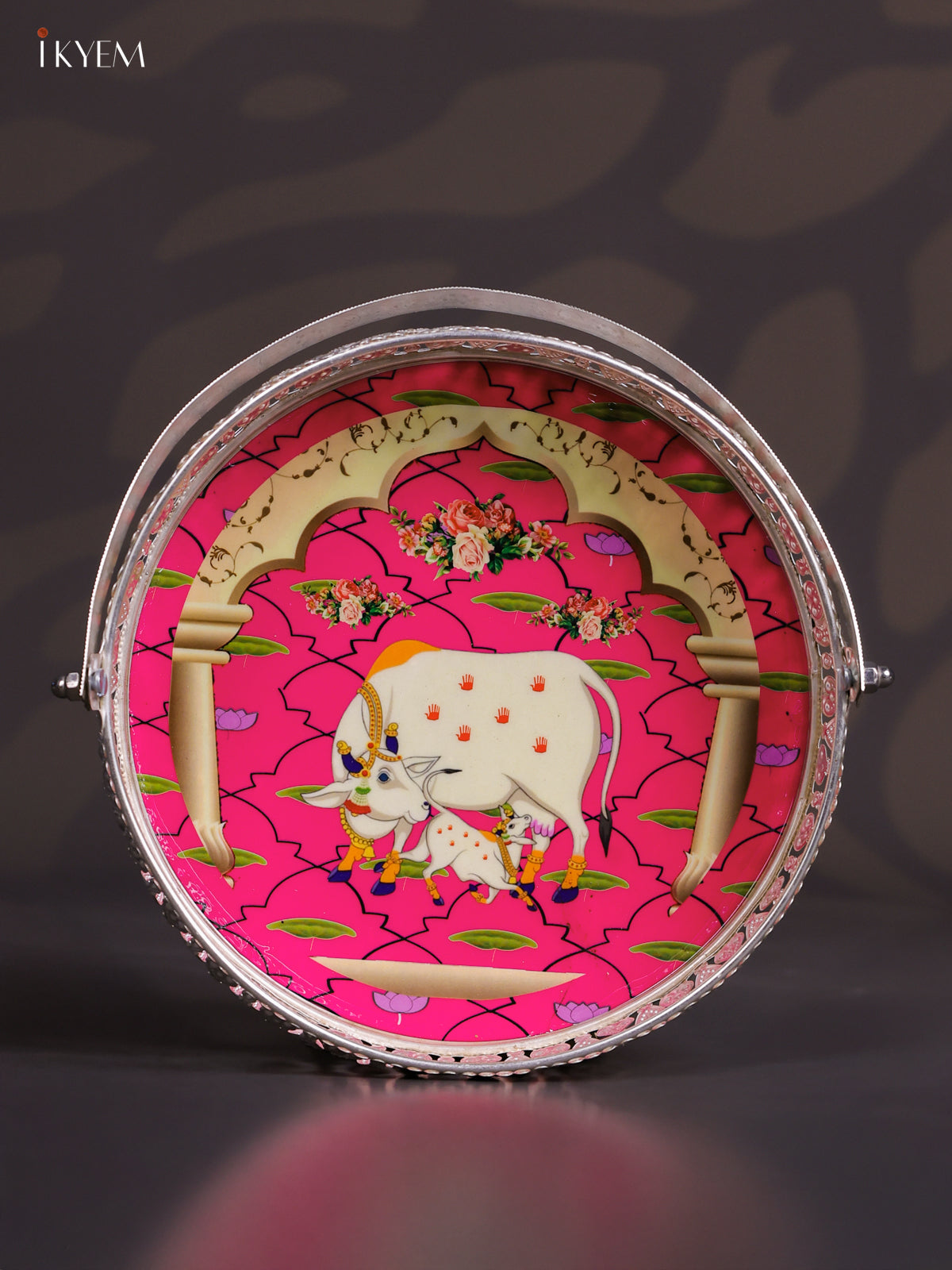 Digital Printed German Silver Tray With Handle - Cow&calf Pink