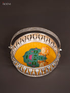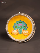 Digital Printed German Silver Tray With Handle - Cow&calf Yellow with Green - 6 inch