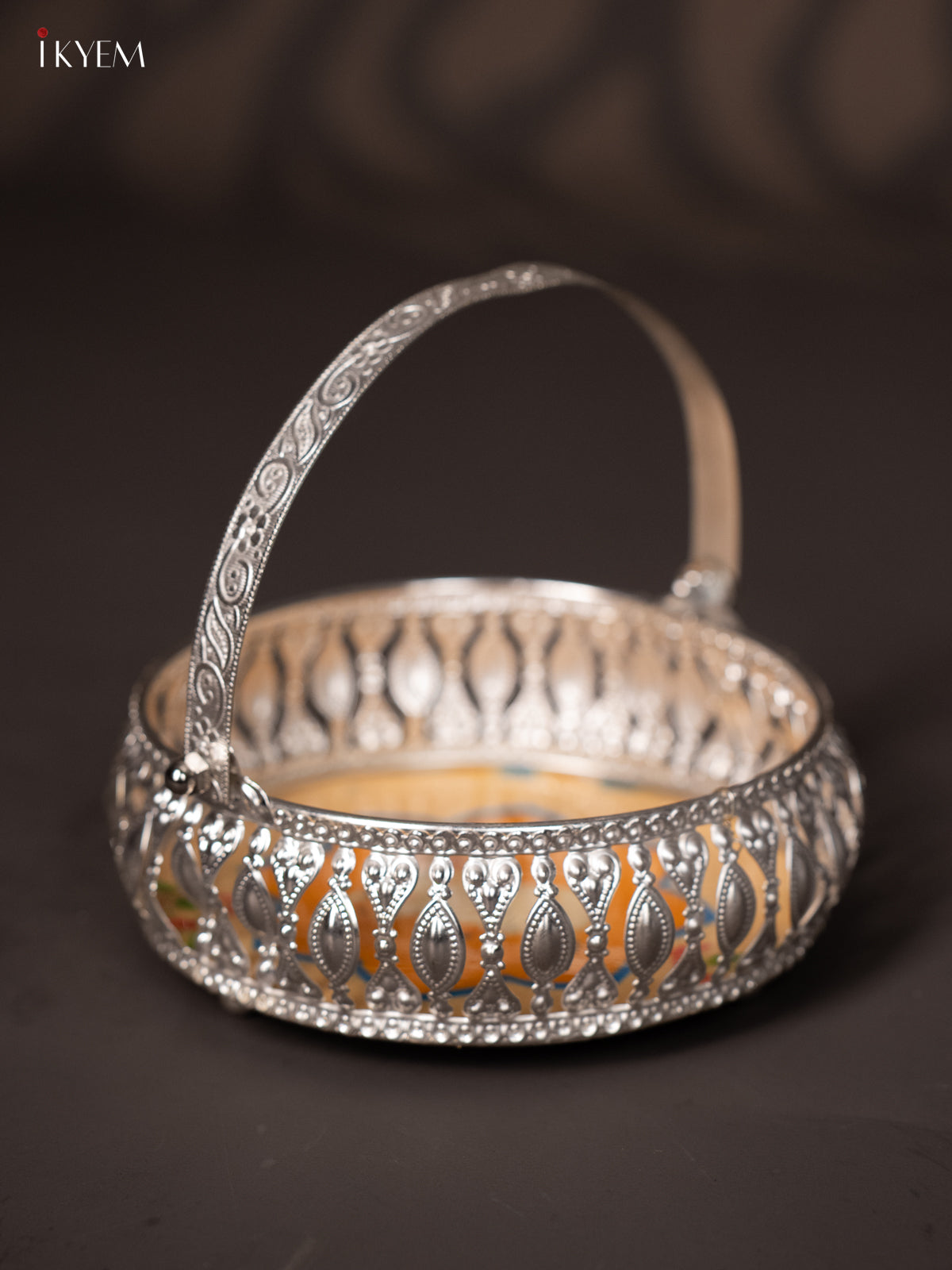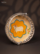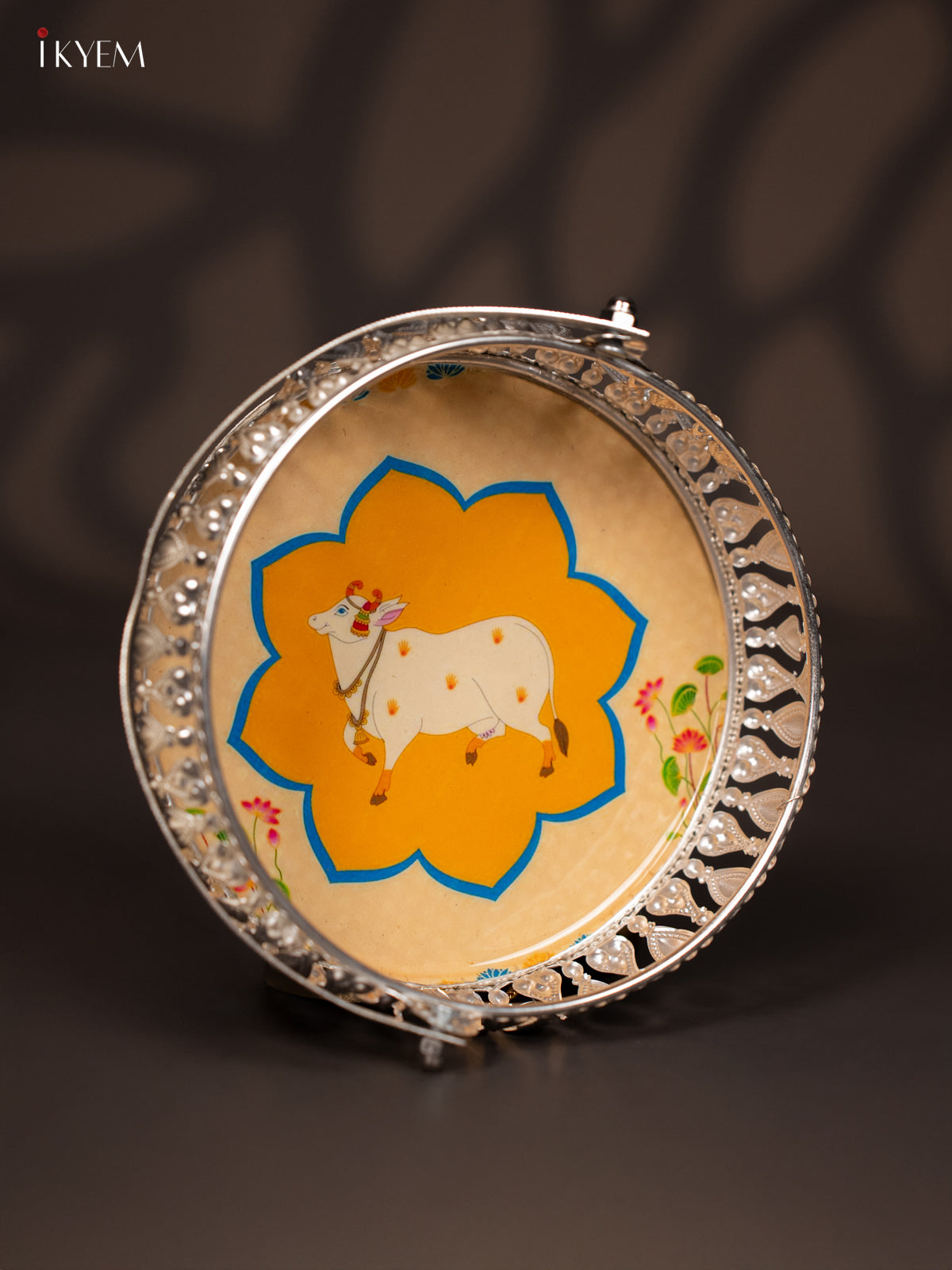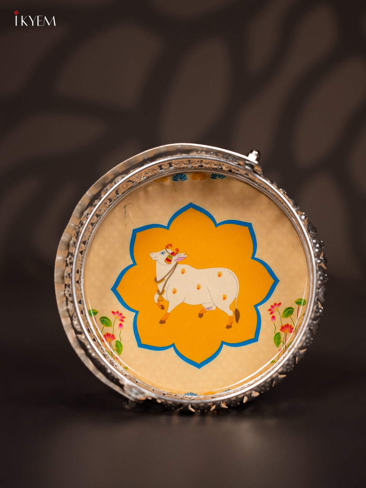 Digital Printed German Silver Tray With Handle - Cow Yellow - 6 inch