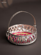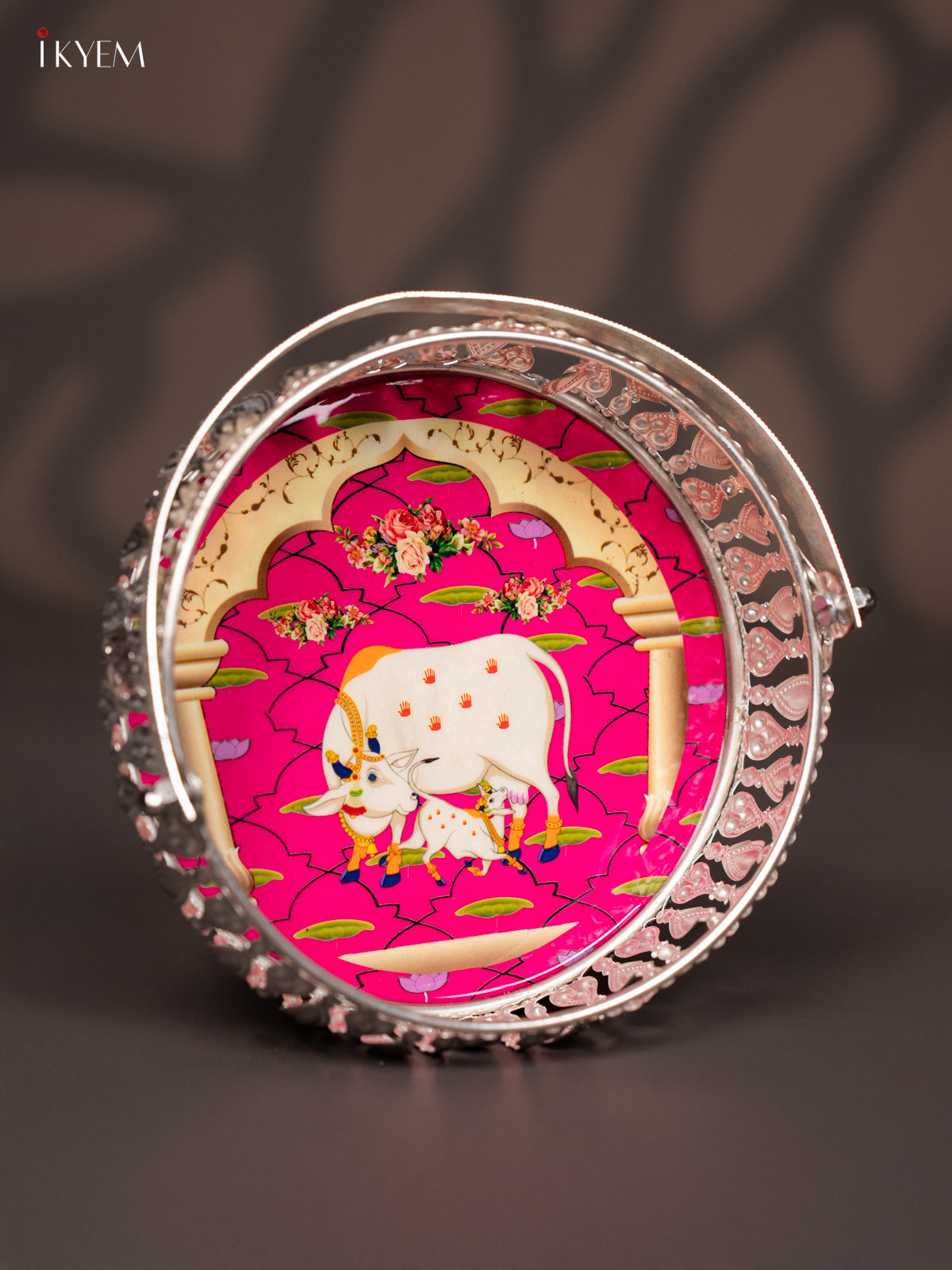 Digital Printed German Silver Tray With Handle - Cow&calf Pink