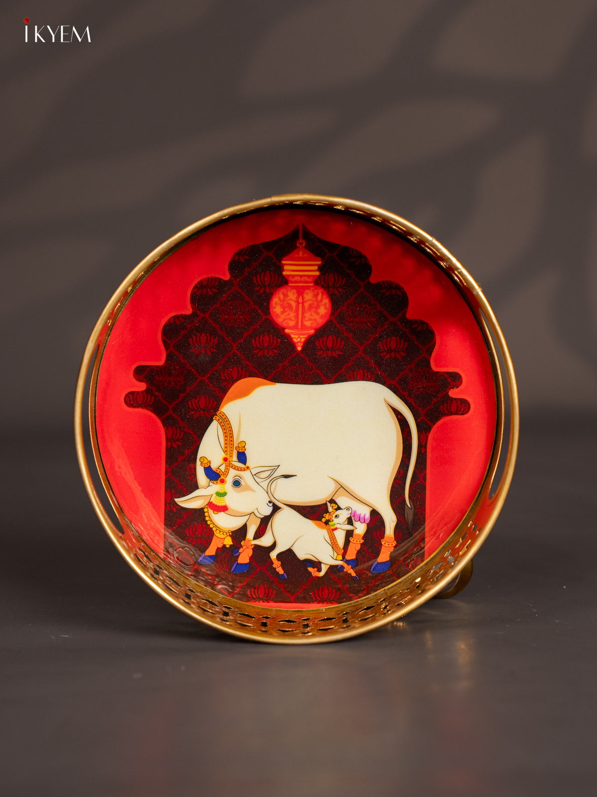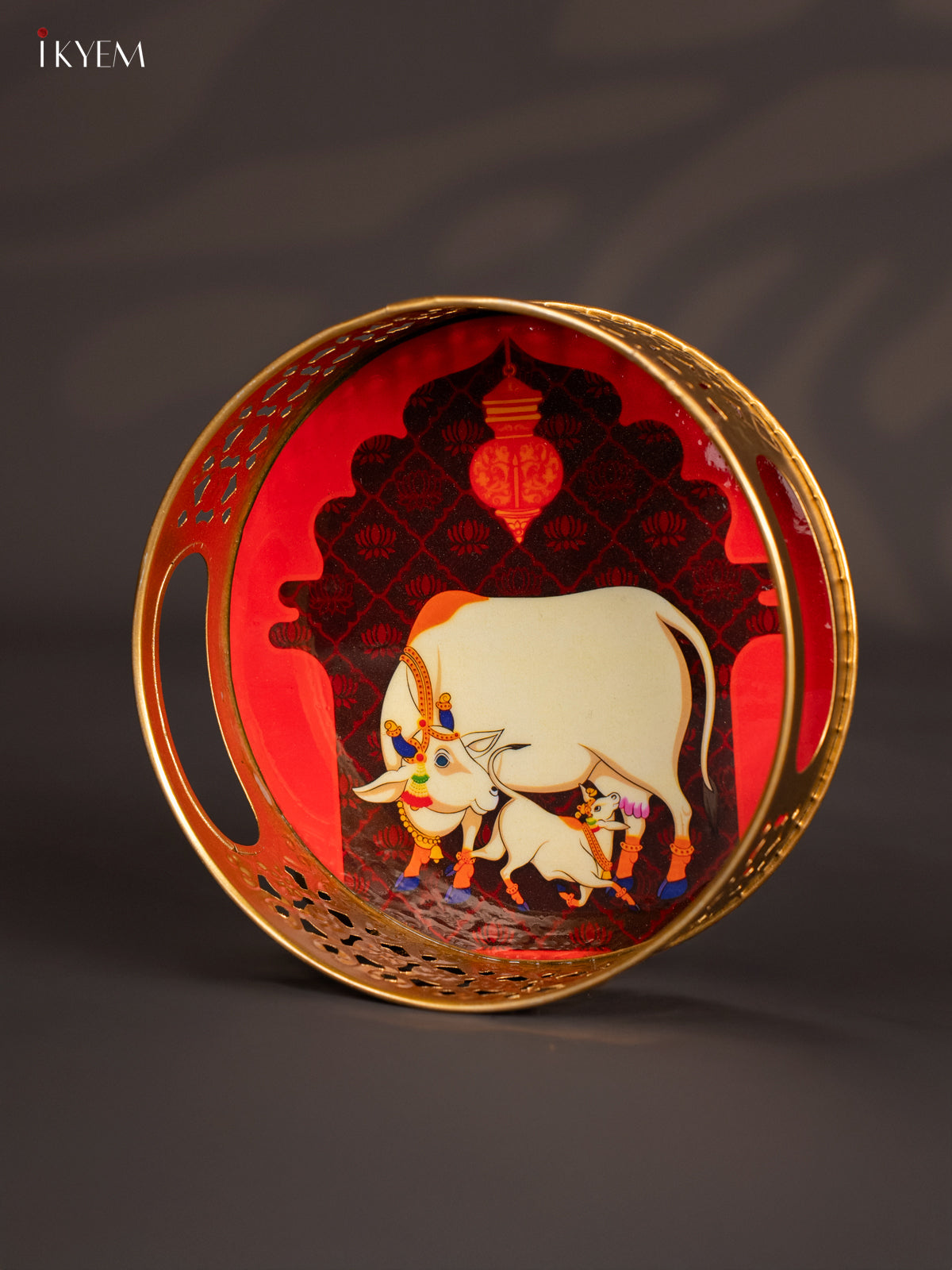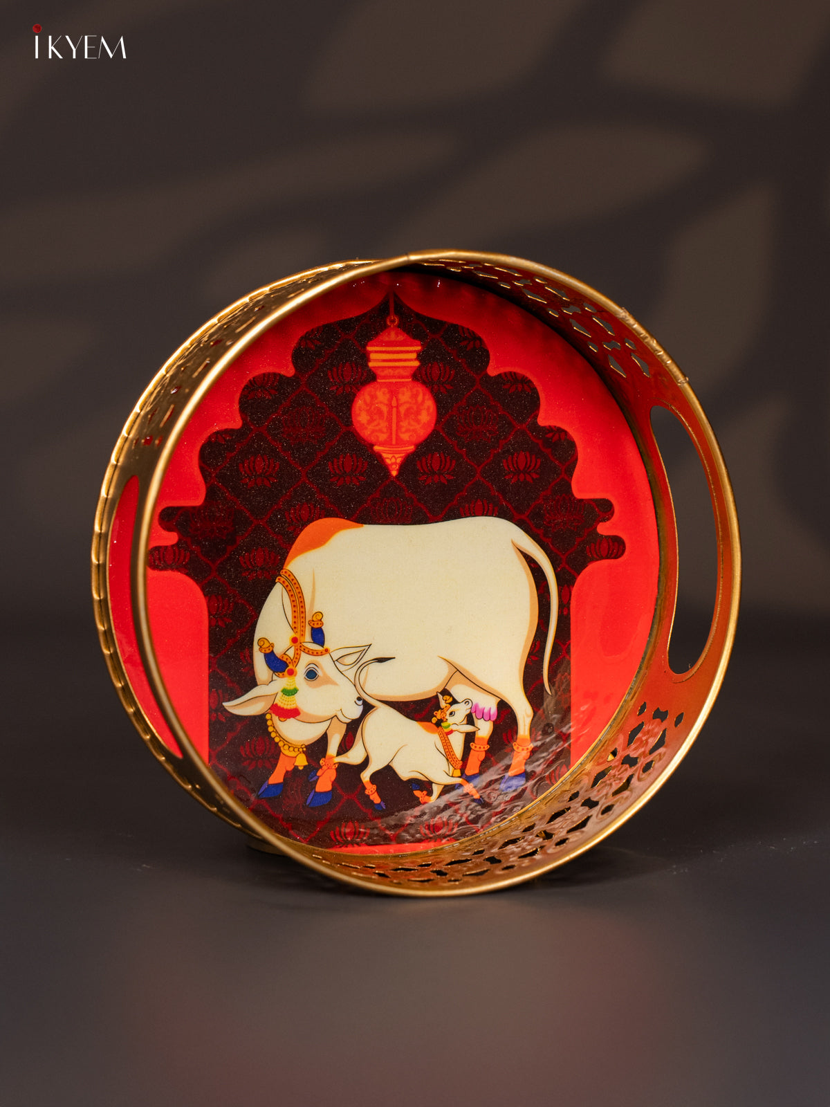 Cow and Calf Digital Printed Metal Tray - Brown - 6 Inch - KJ31239