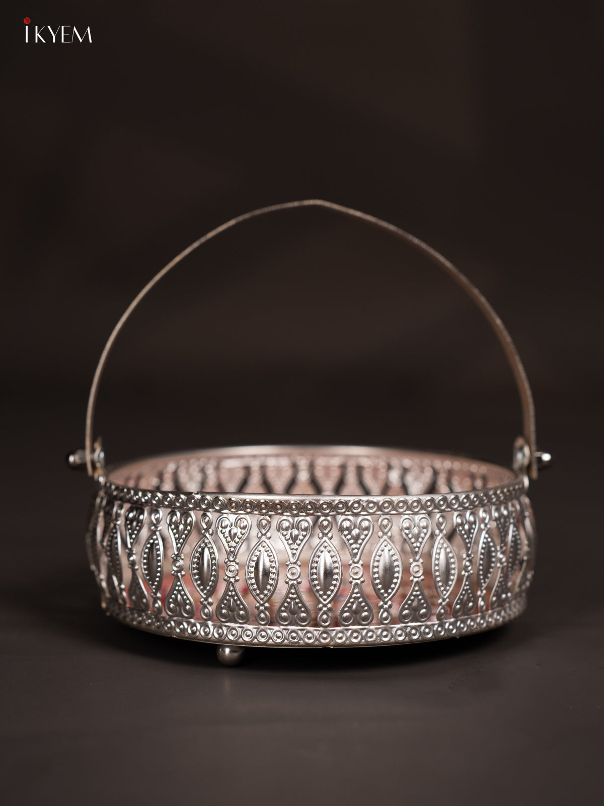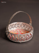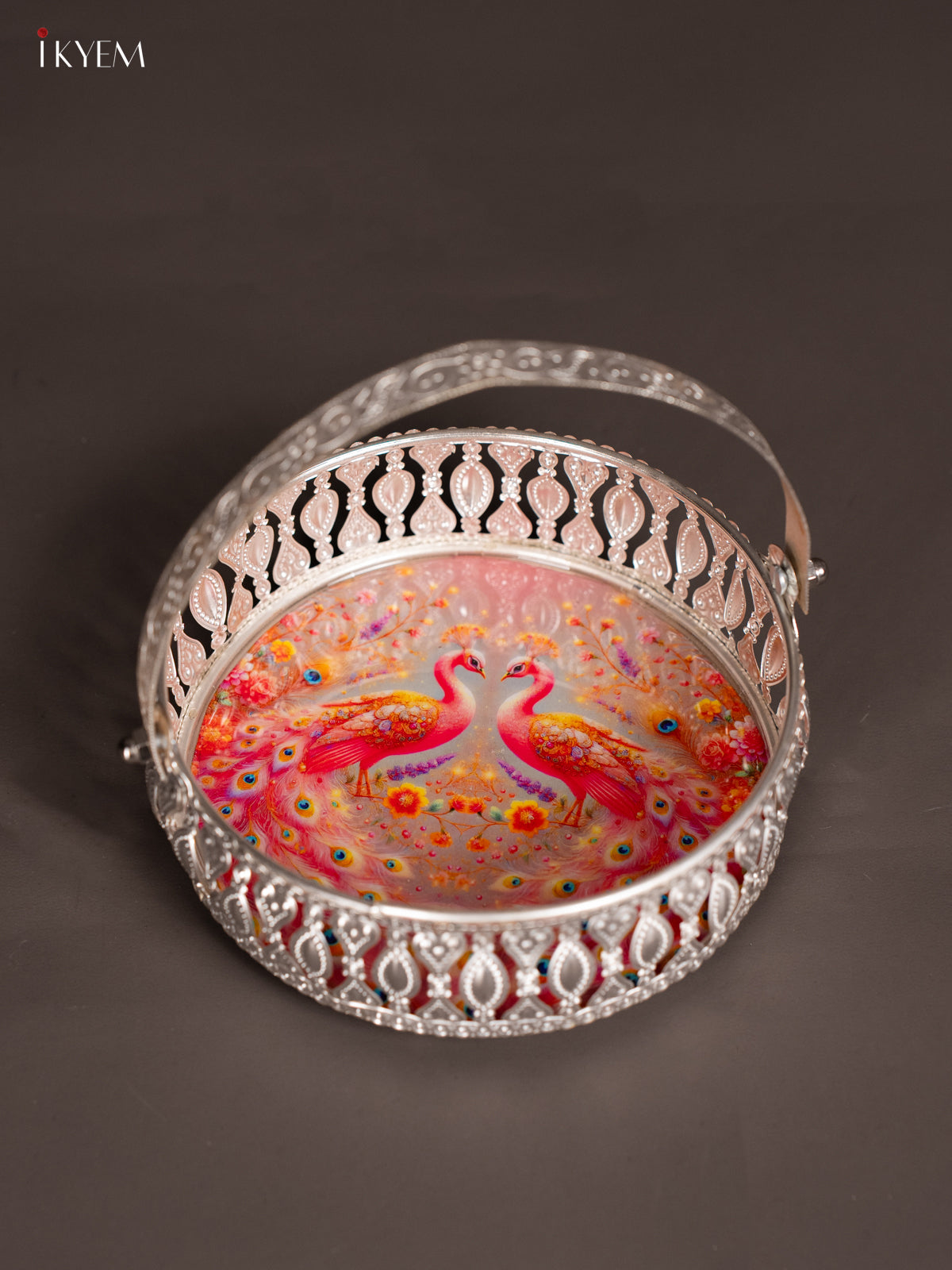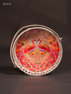 Digital Printed German Silver Tray With Handle - Peacock Pink - 6 inch