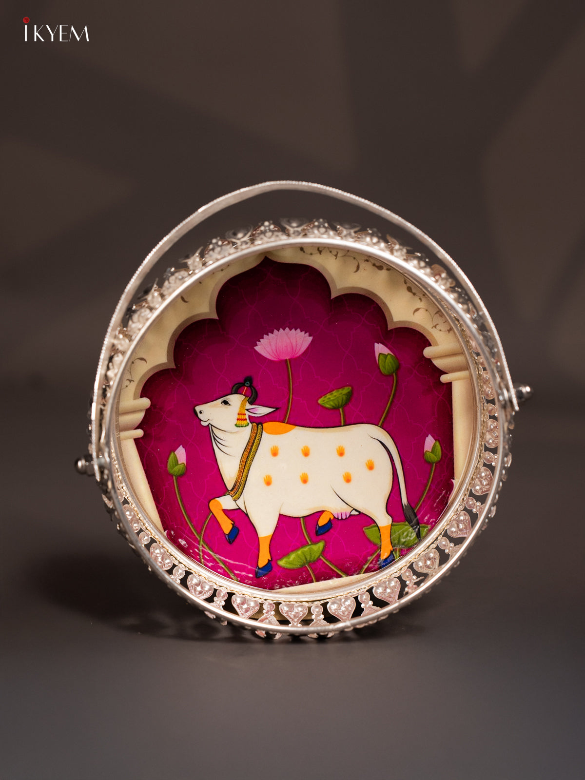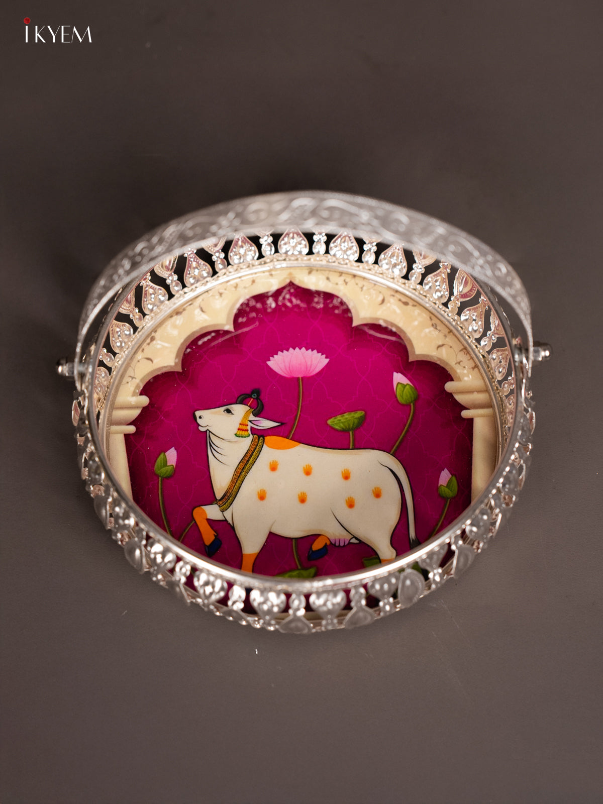 Digital Printed German Silver Tray With Handle - Cow Purple - 6 inch
