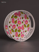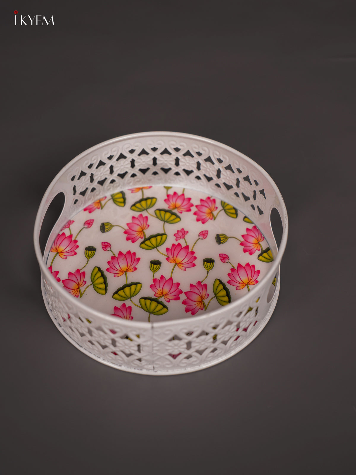 Lotus Digital Printed White Metal Tray - White - 6 Inch - KN02116