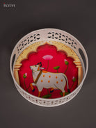 Add a pop of colour and traditional charm to your home with this Cow-print white metal tray-Pink. Measuring 6 inches L × 6 inches W × 2 inches H and weighing just 125 g, this lightweight yet durable tray is ideal for daily use, serving snacks or as a decorative item.