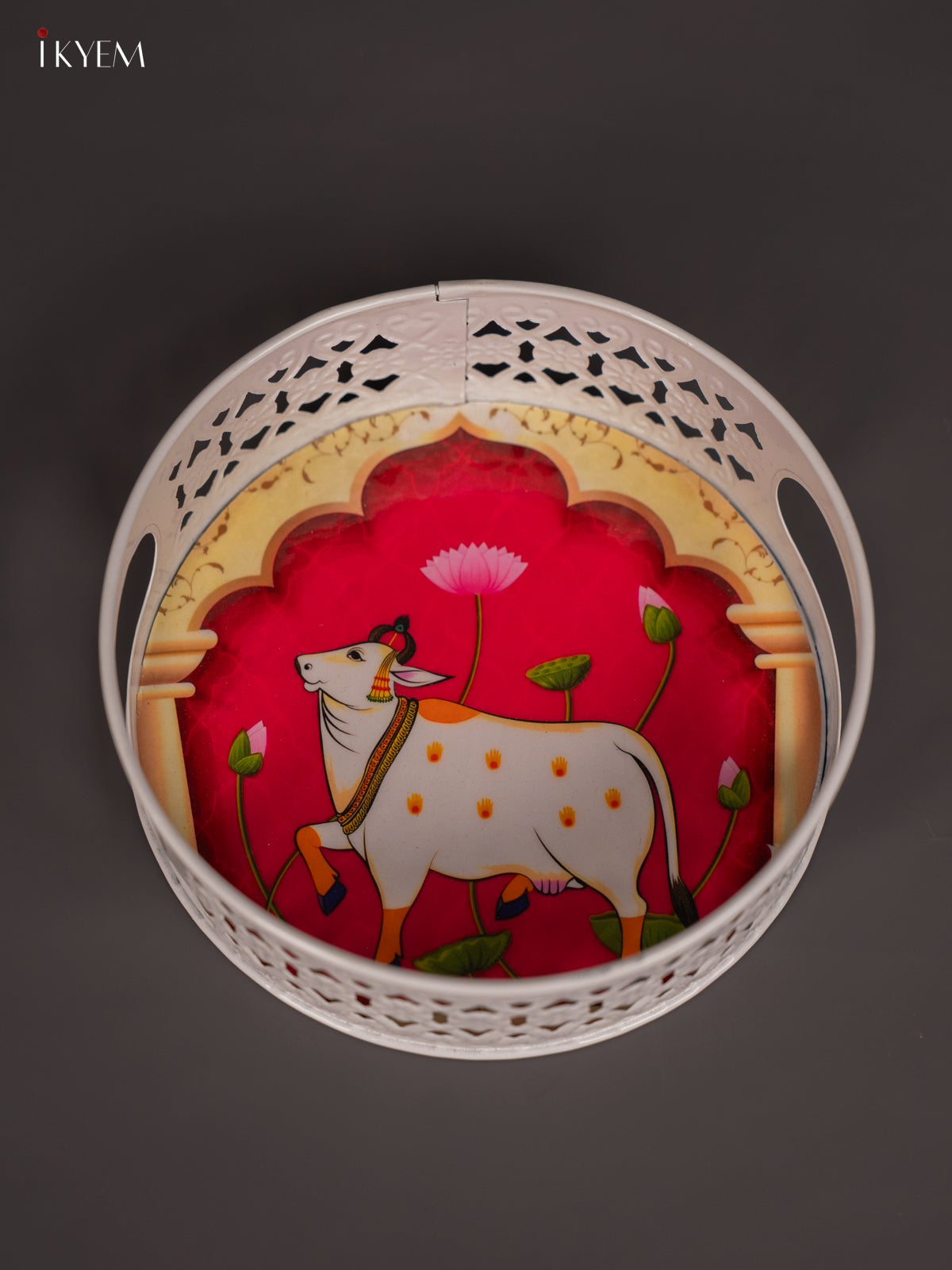 Cow Digital Printed White Metal Tray - Pink - 6 Inch - KN02117