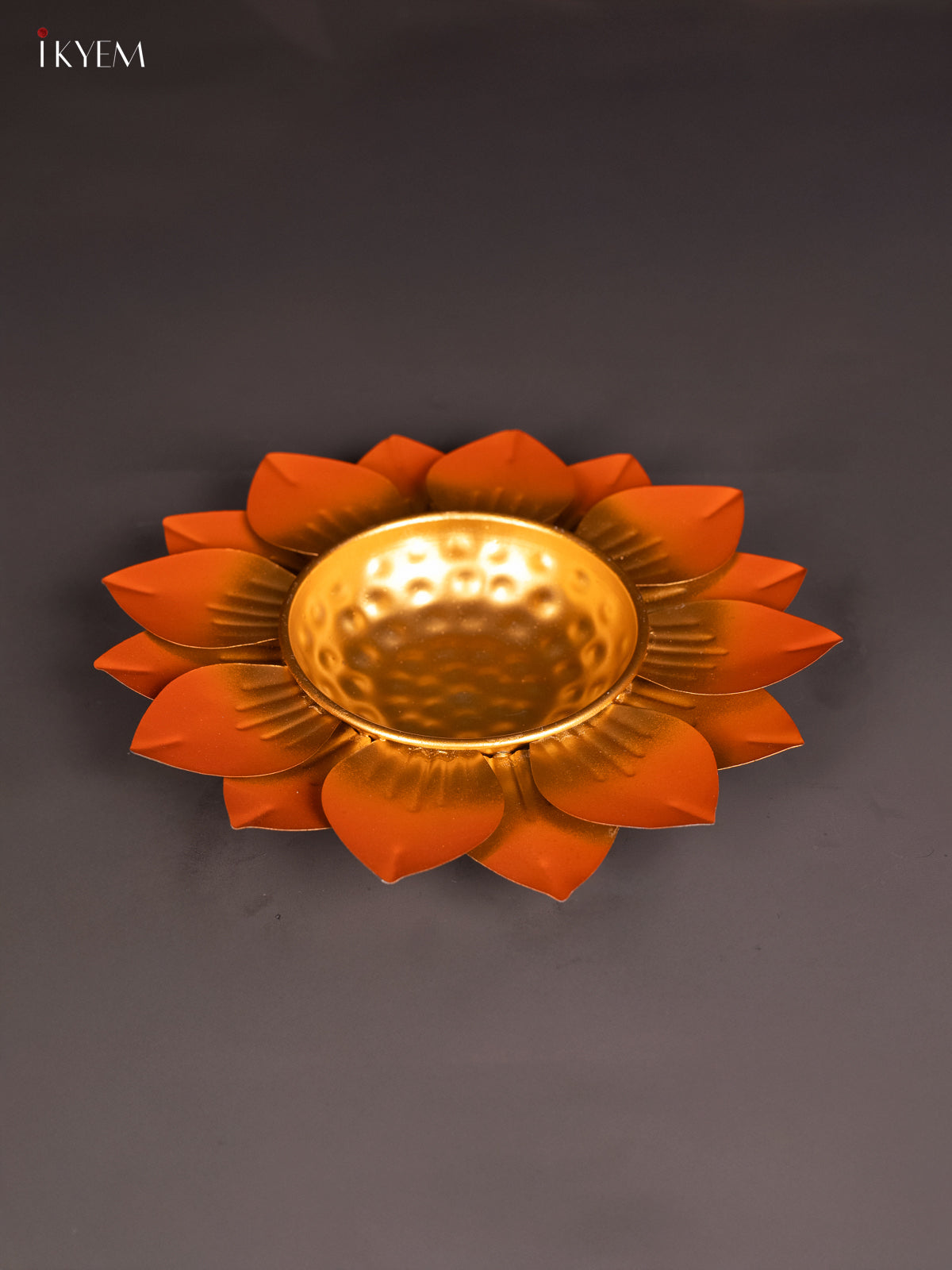 Metal Leaf Urli - Orange - (12x12) Inches - KI19131
