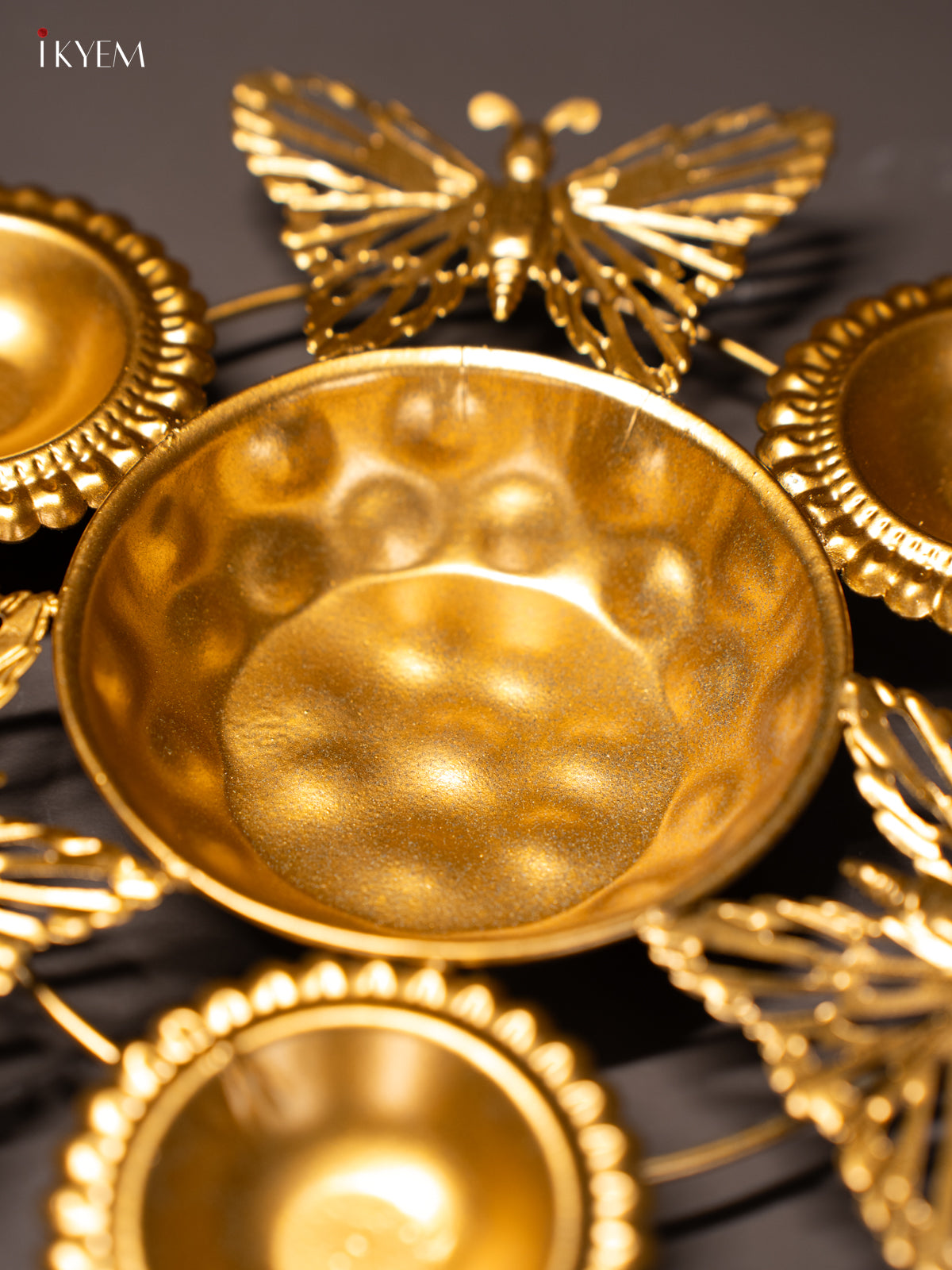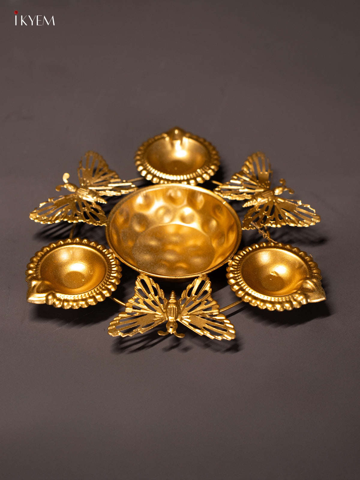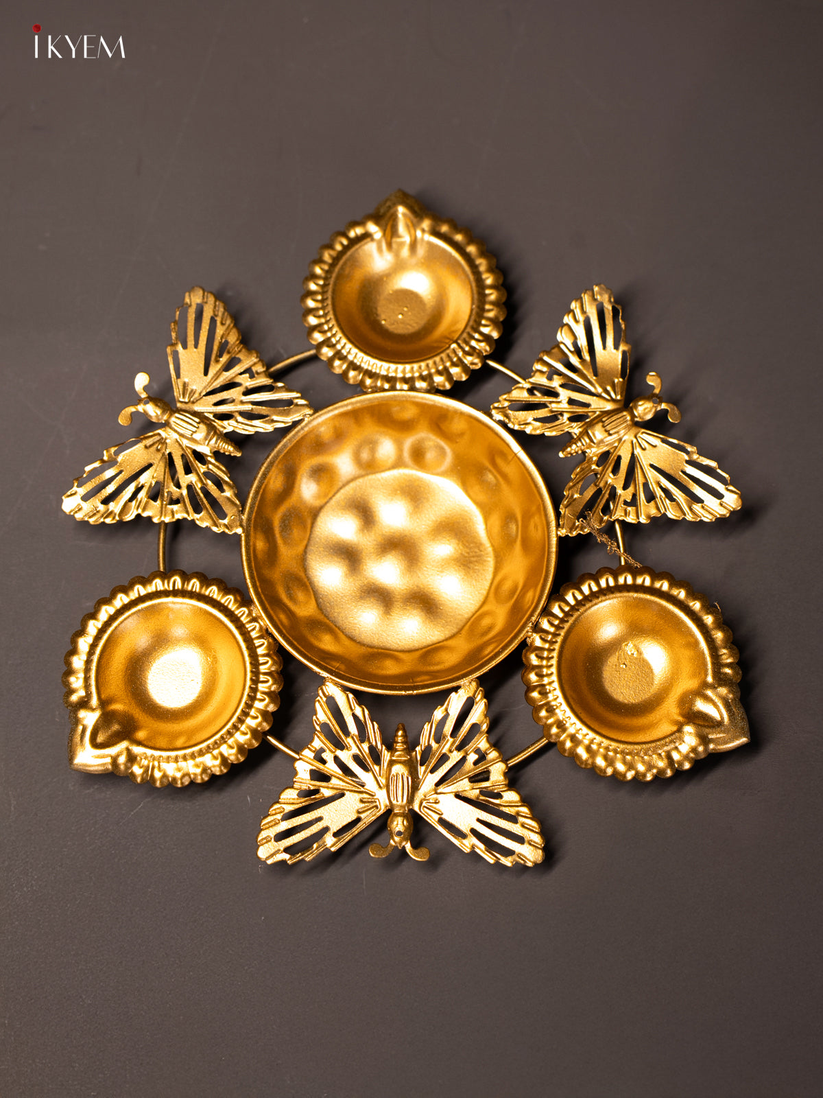 Metal Diya Urli - Butterfly - 7x7 Inches - KI26116