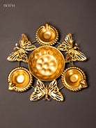 • The Metal Diya Urli with a butterfly motif, measuring 7x7 inches, is an elegant addition to your pooja decor.