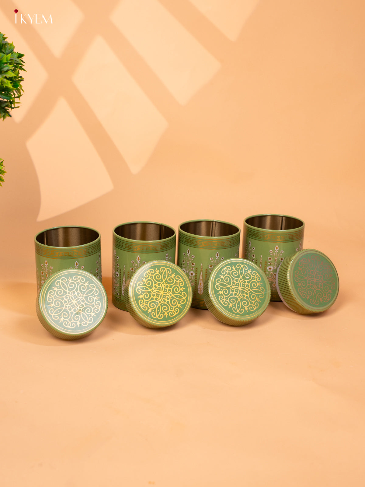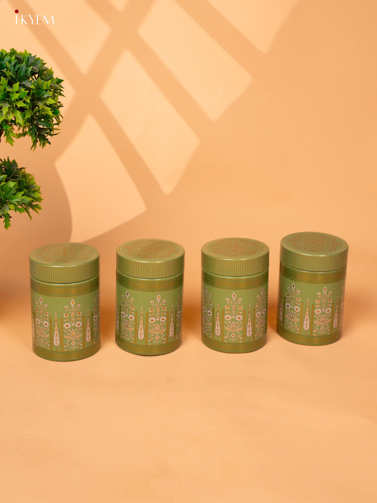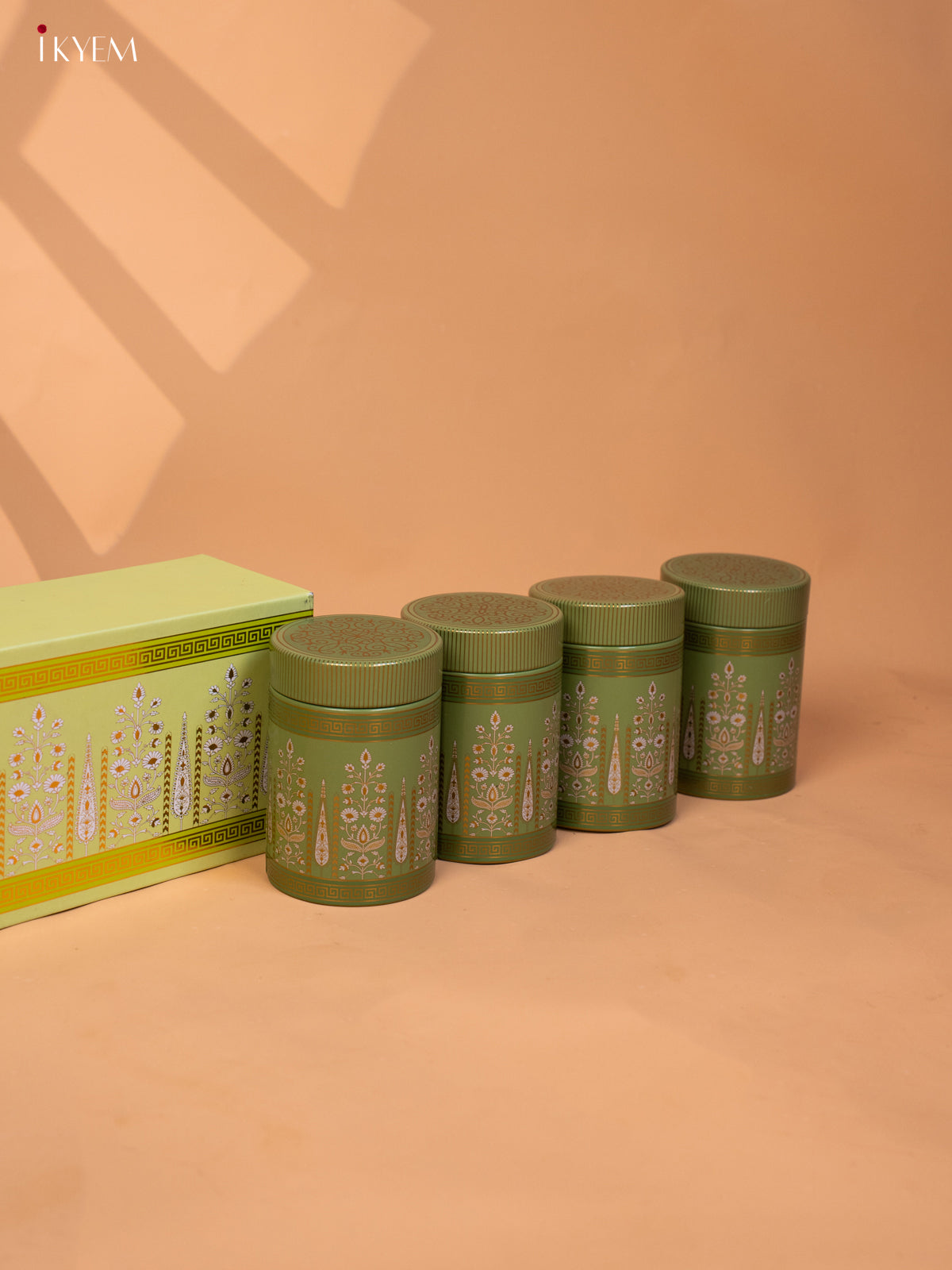 Green Digital Printed Dry Fruit Hamper Box with 4 Big Jars - KB27128