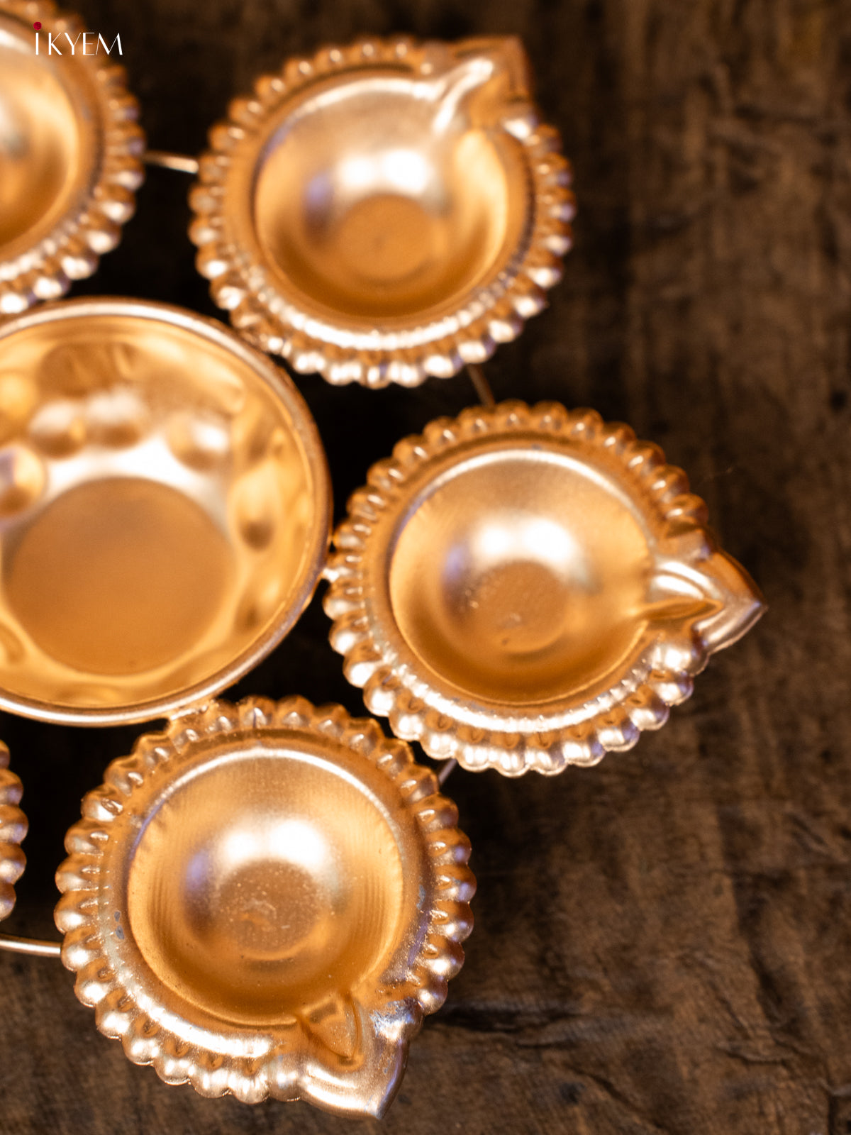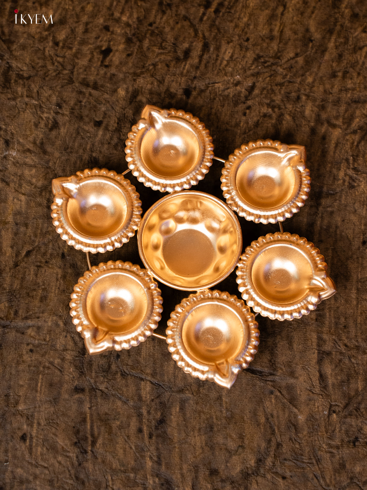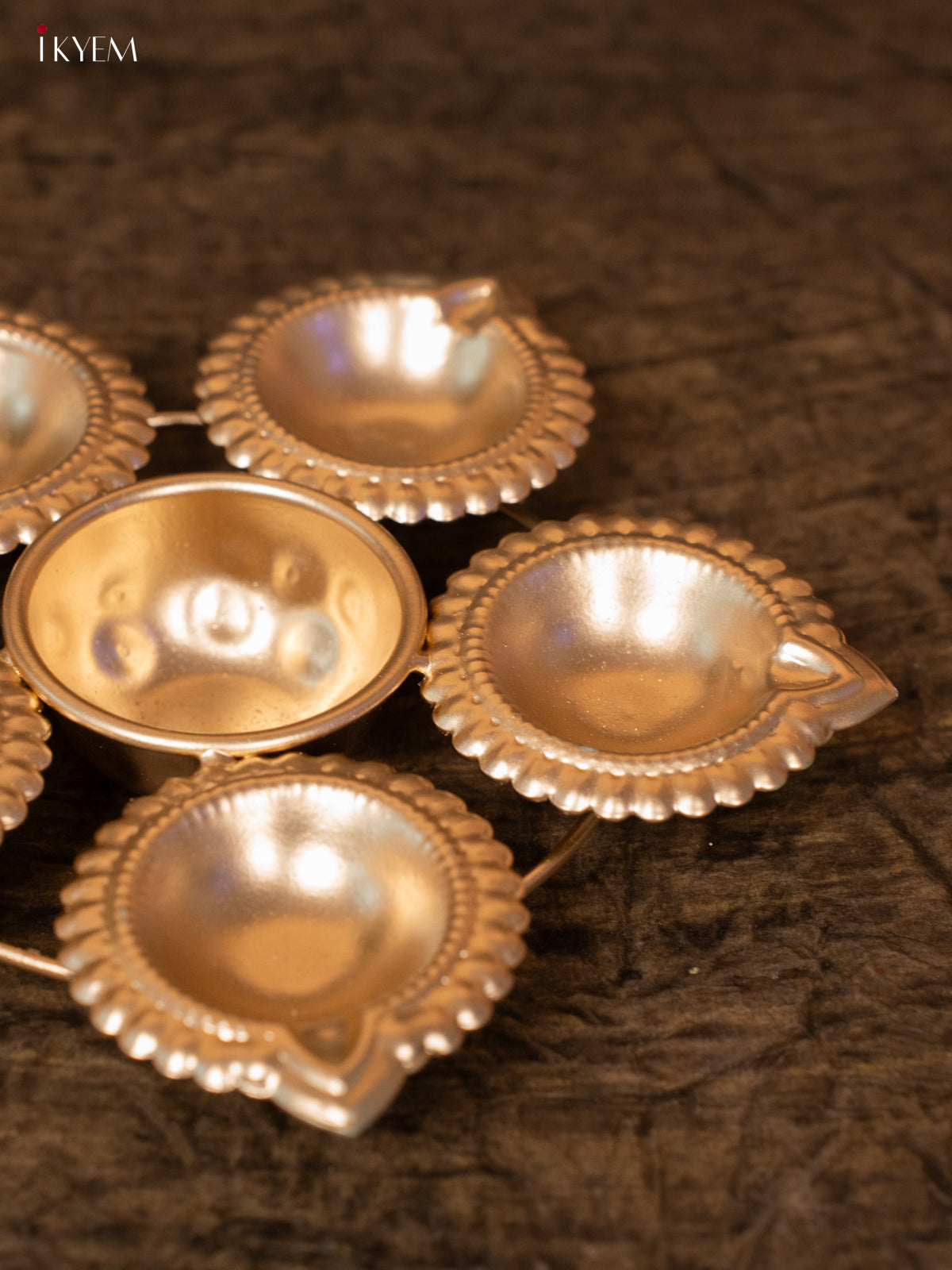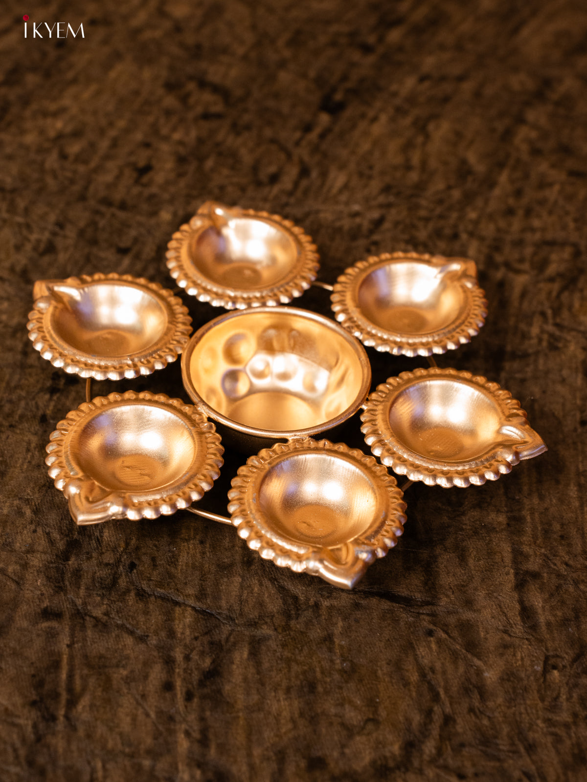 Metal Hand Painted 6-Face Diya Urli (7×7) - KB26118