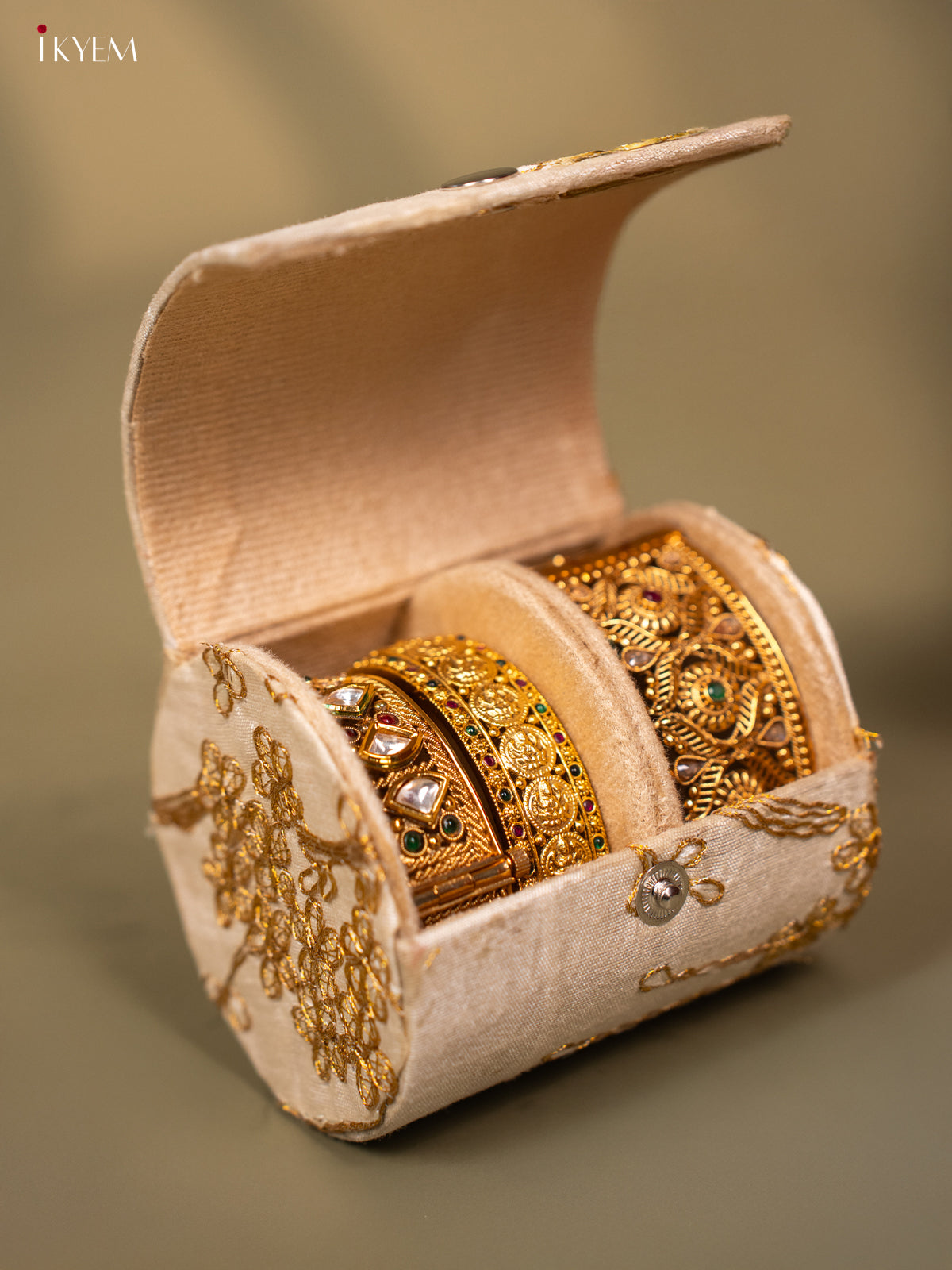 Exquisite Embroidered Golden Zari work Bangle Box - KC24115