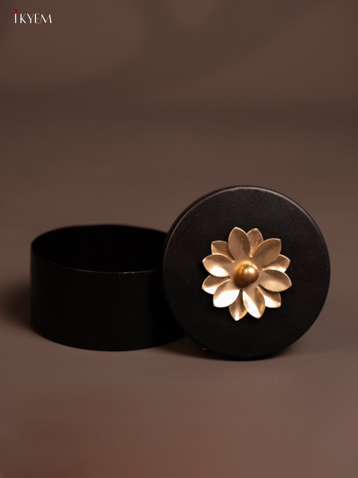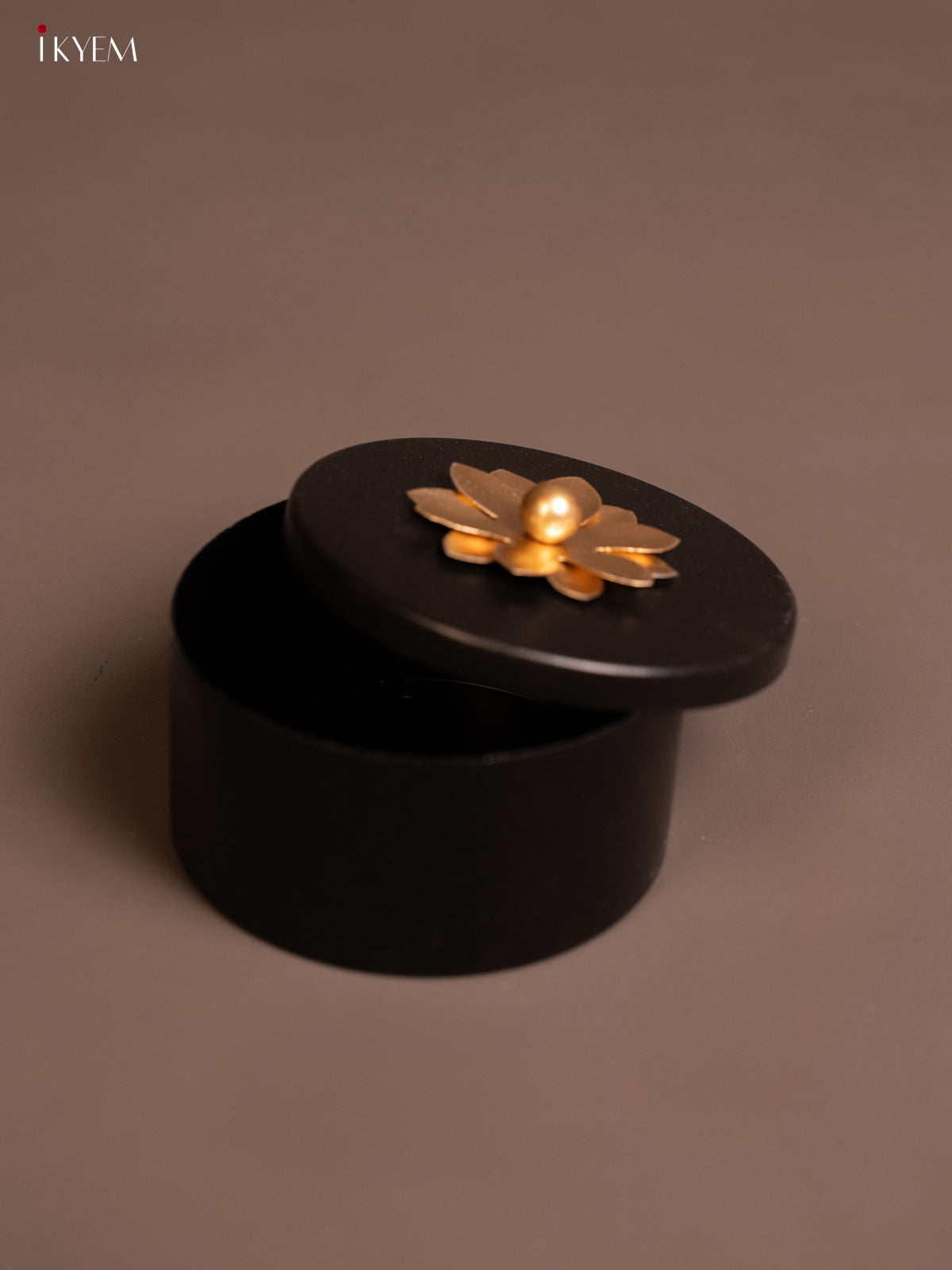 - Handcrafted Black Box with elegant brass top designed for storing dry fruits and nuts.