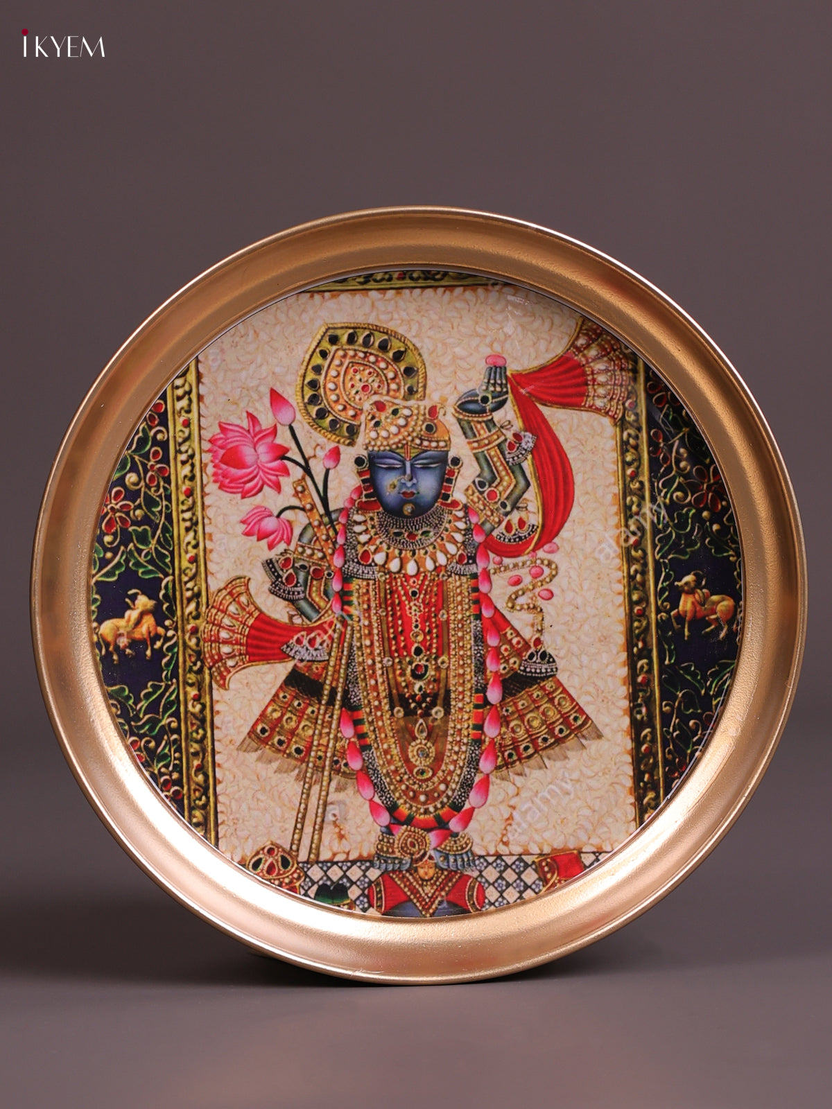 Srinath- Ji - Printed Brass Coated Plate Cream & Black - 8 inch