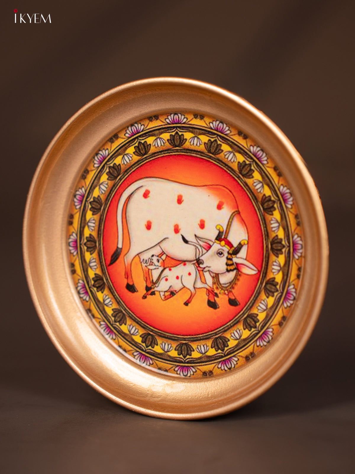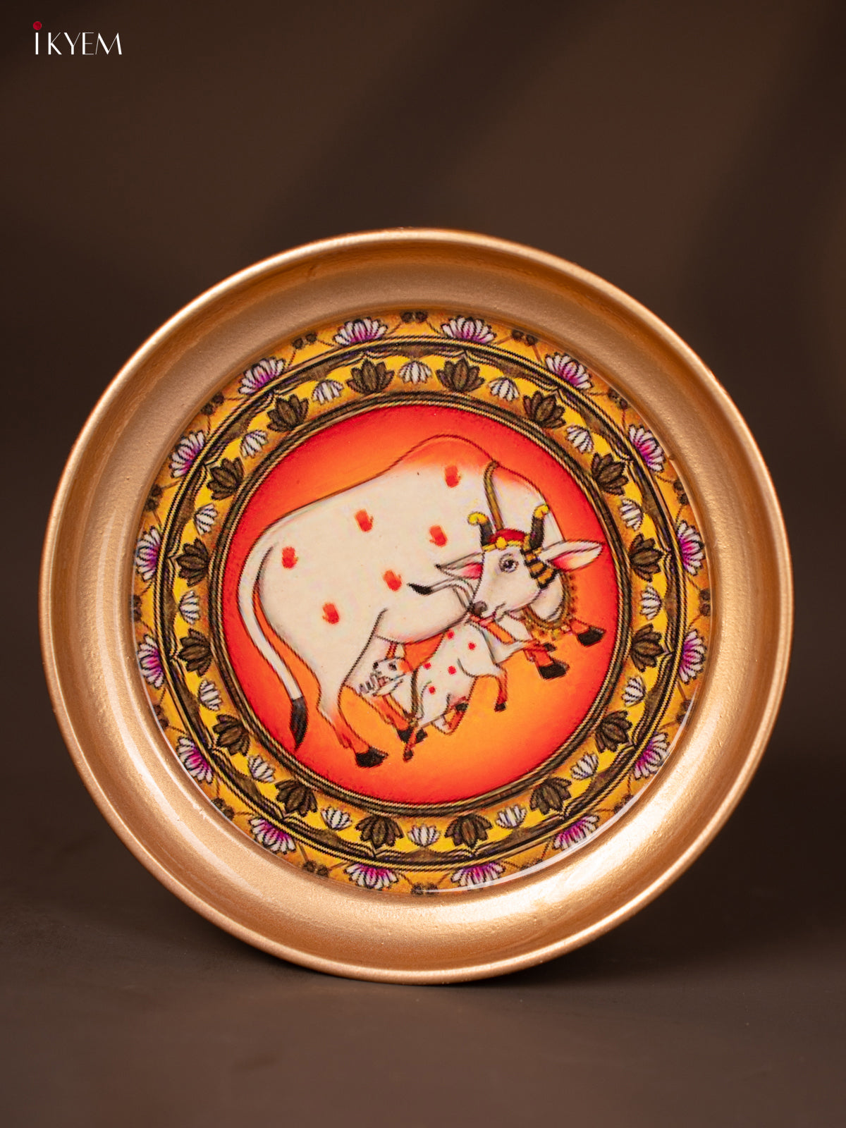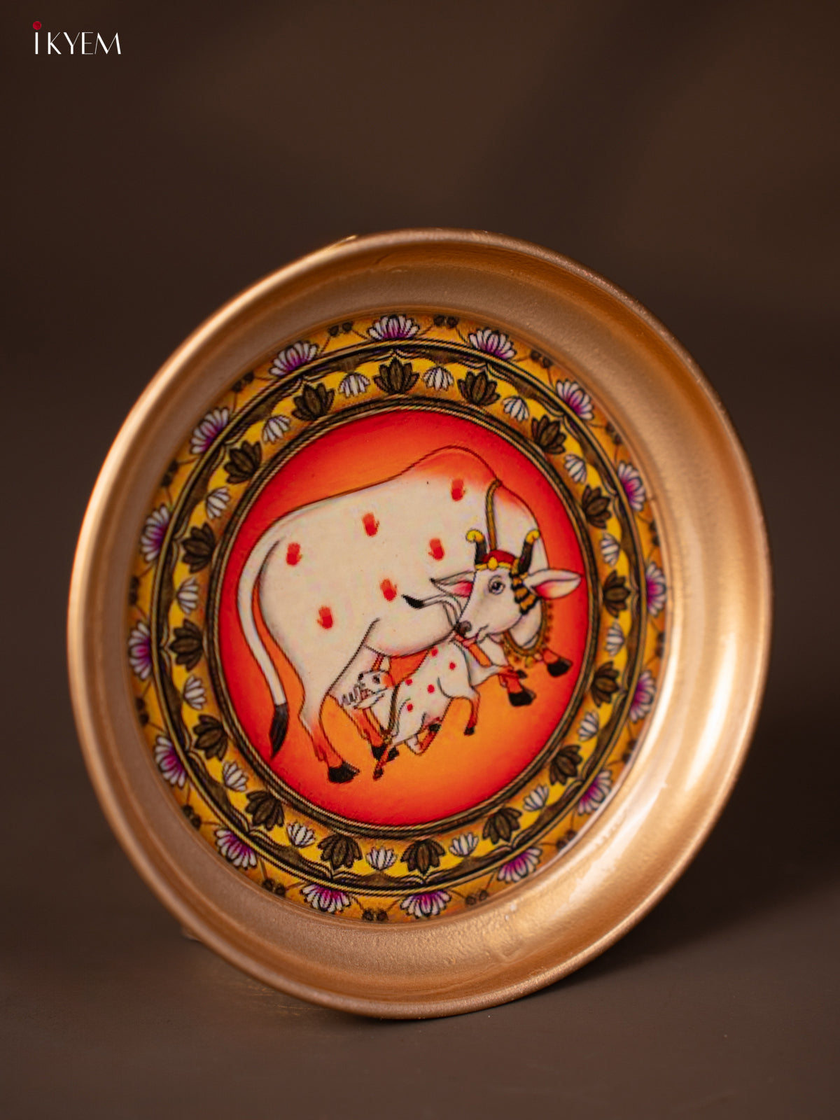 Cow & Calf Printed Orange with Yellow Brass Coated Plate - 6 Inches - KG25136