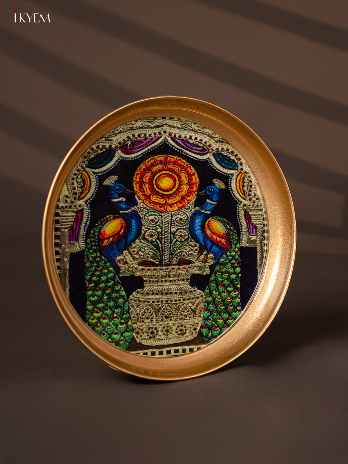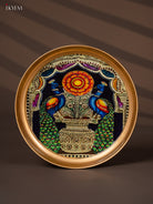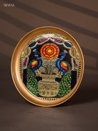 Peacock Printed Navy Blue Brass Coated Plate - 8 Inches - KG25170
