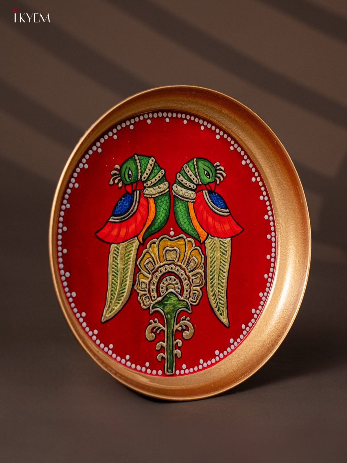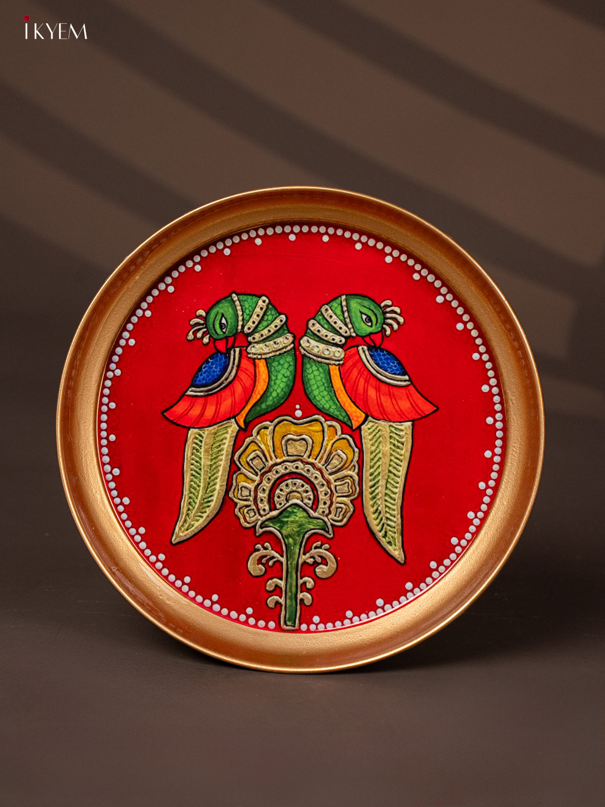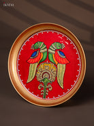 - This 8-inch red brass plate features an elegant parrot print, making it an ideal choice for pooja celebrations and traditional return gifts.