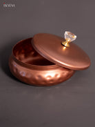 Organize snacks or dry fruits elegantly with our Metal Copper‑Coated Nut Jar. This compact jar measures 3″ (H) × 4.2″ (W) × 4.2″ (L) and weighs 150 g. Its copper‑coated metallic finish gives a rich, earthy aesthetic — perfect for kitchen counters, dining tables or gifting. Durable yet lightweight, the jar blends traditional charm with everyday practicality.