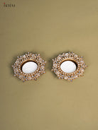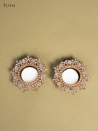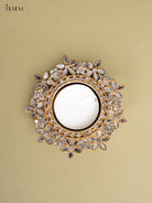 Flower Candle Holder with Mirror work set of 2 - KI14134