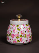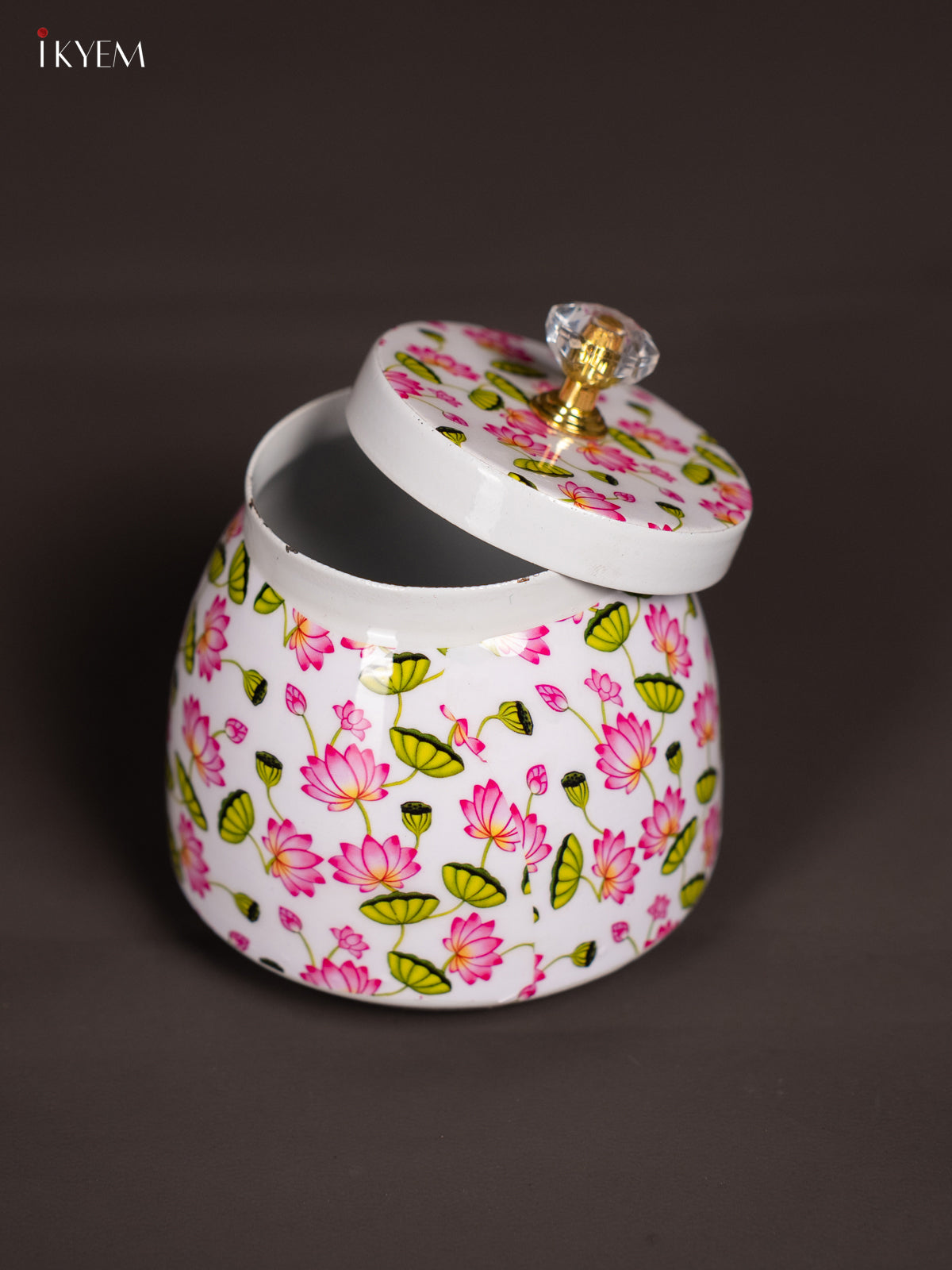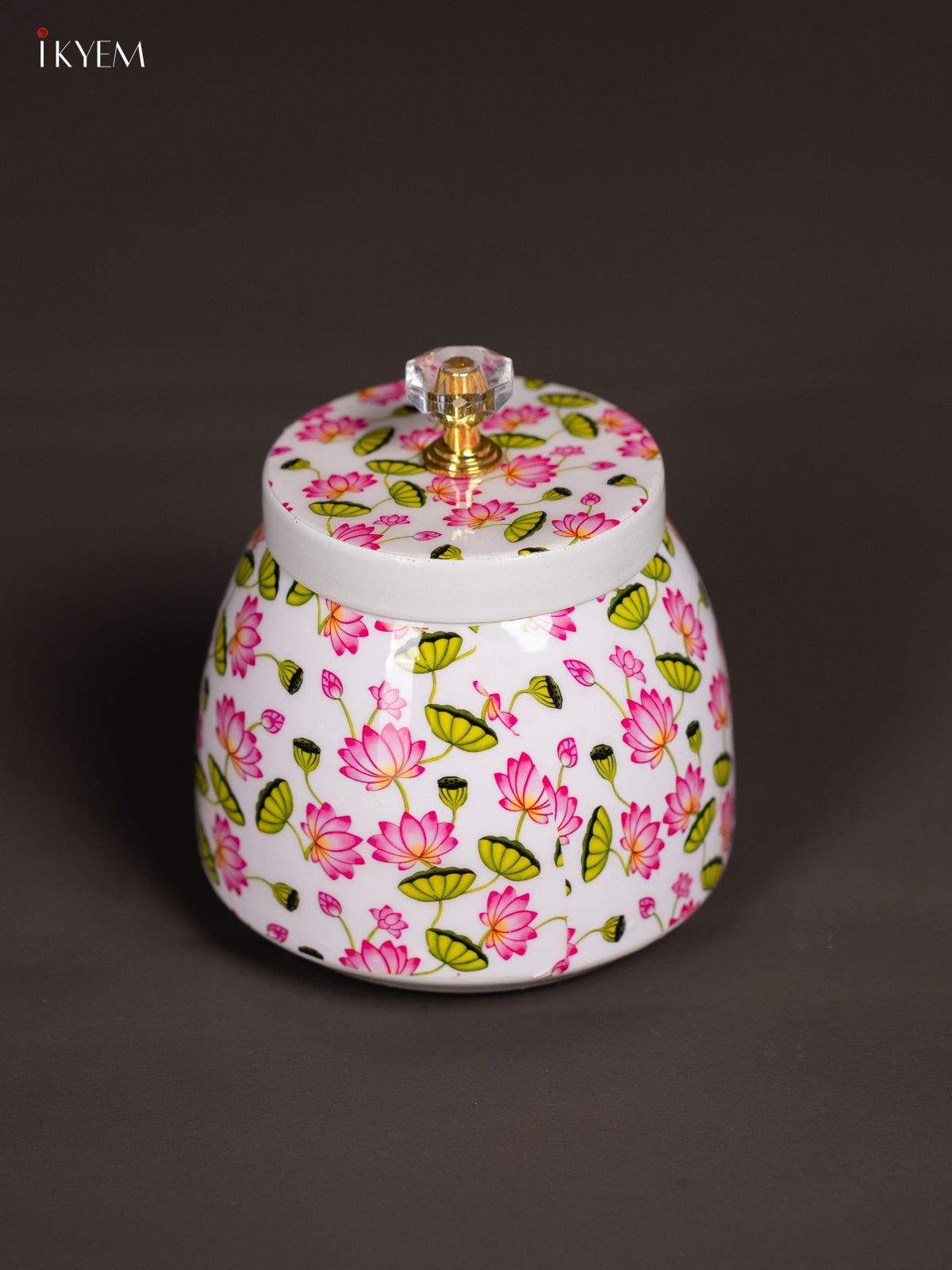 White Digital Printed Lotus Dry Fruit Jar – 4 Inch - KI19112