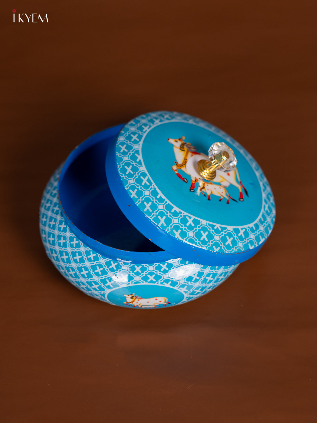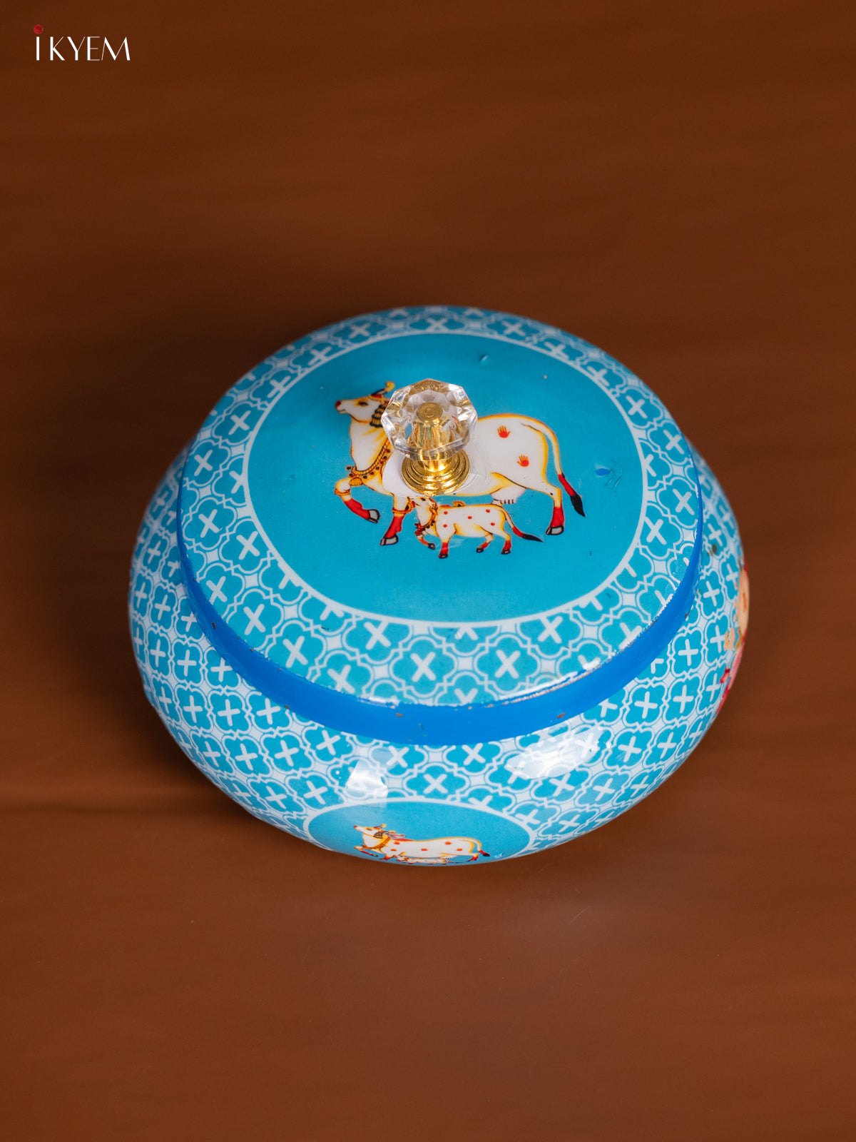 Cow & Calf Metal Nut Jar - Sky Blue - 3.5 Inch - KI19118