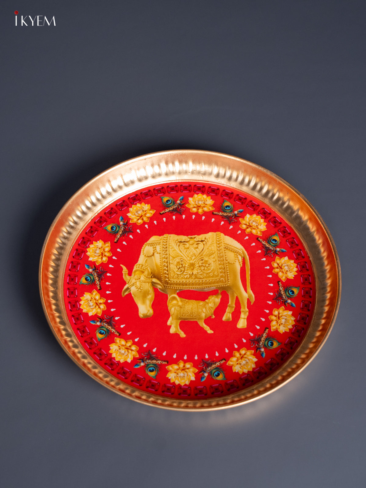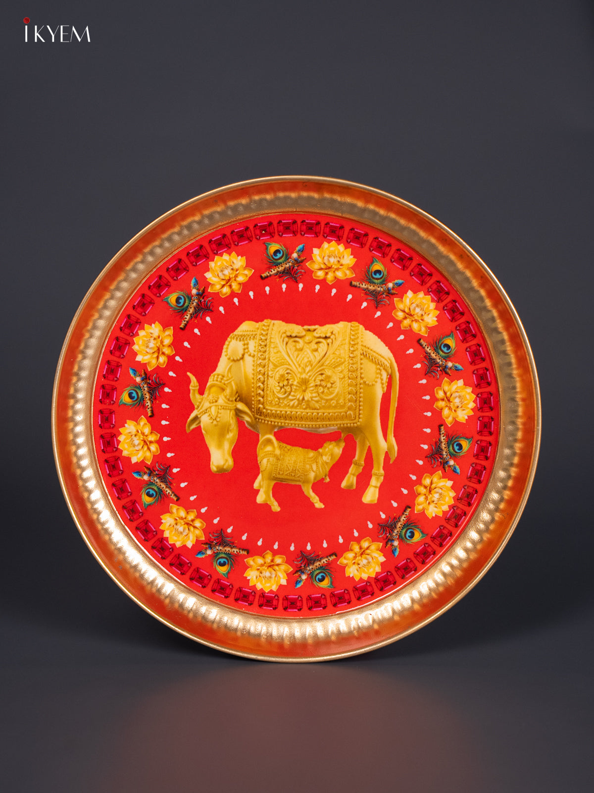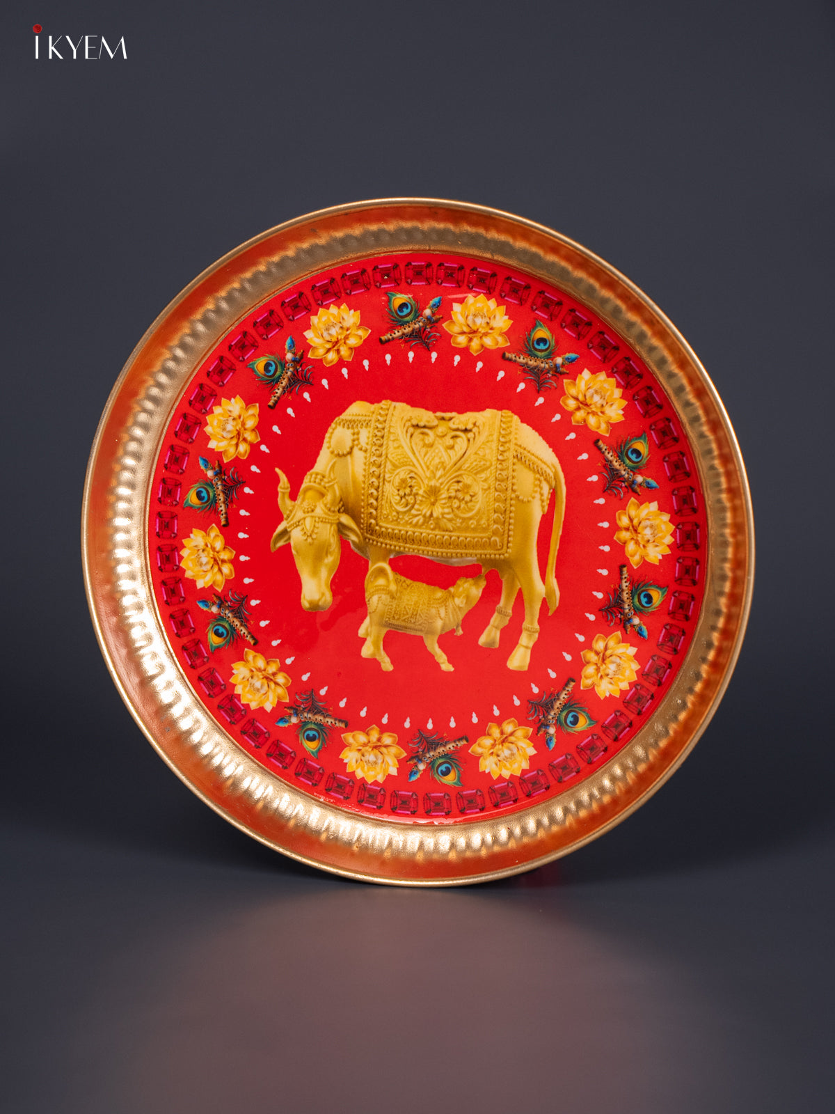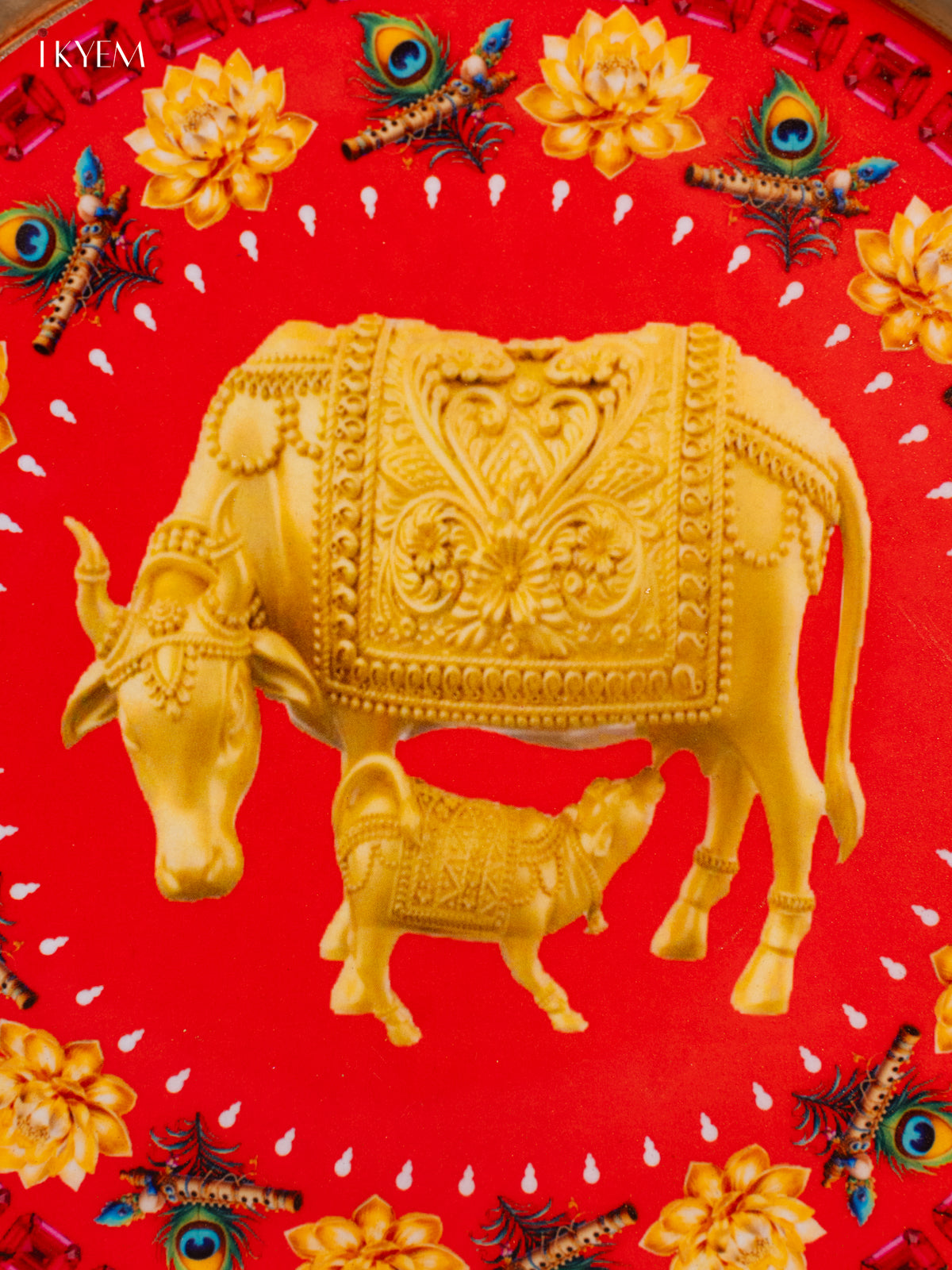 - Enhance your pooja space with this aesthetically printed metal plate featuring intricate pichwai designs in vibrant tones.