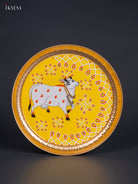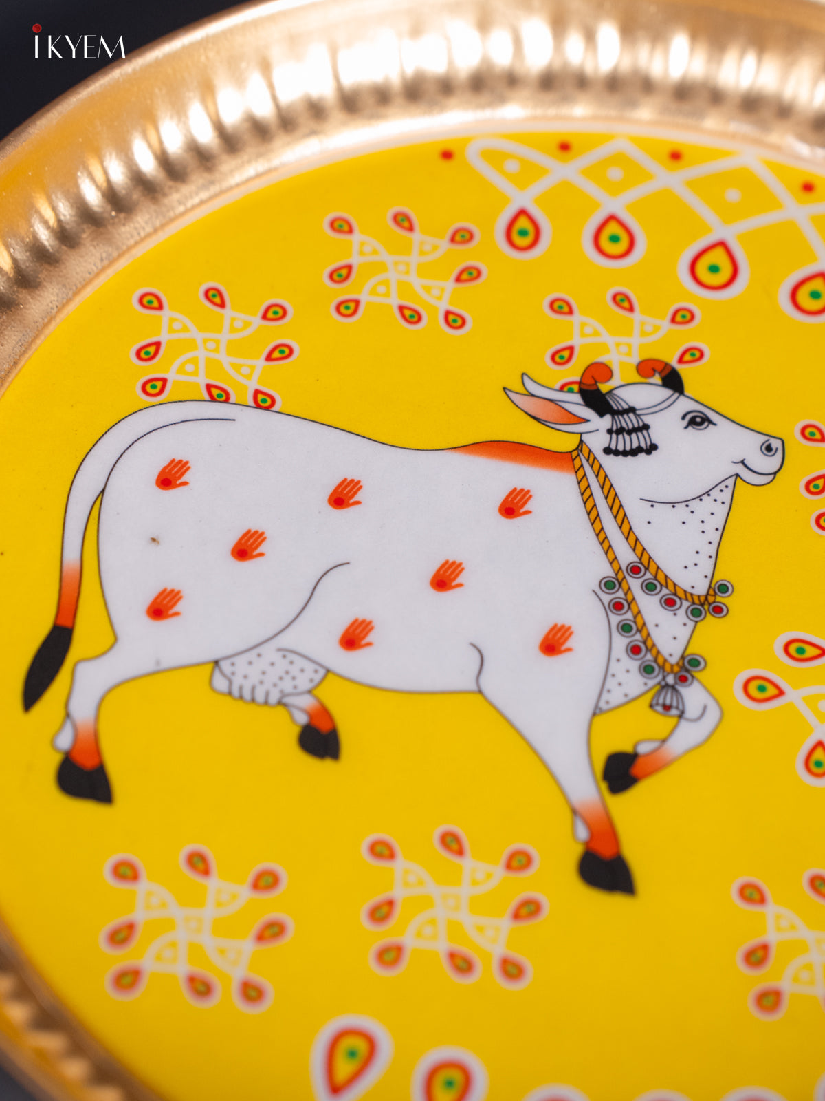 Cow & Kolam Digital Printed Metal Plate - Yellow - KJ21122