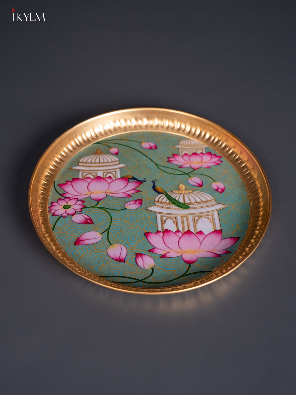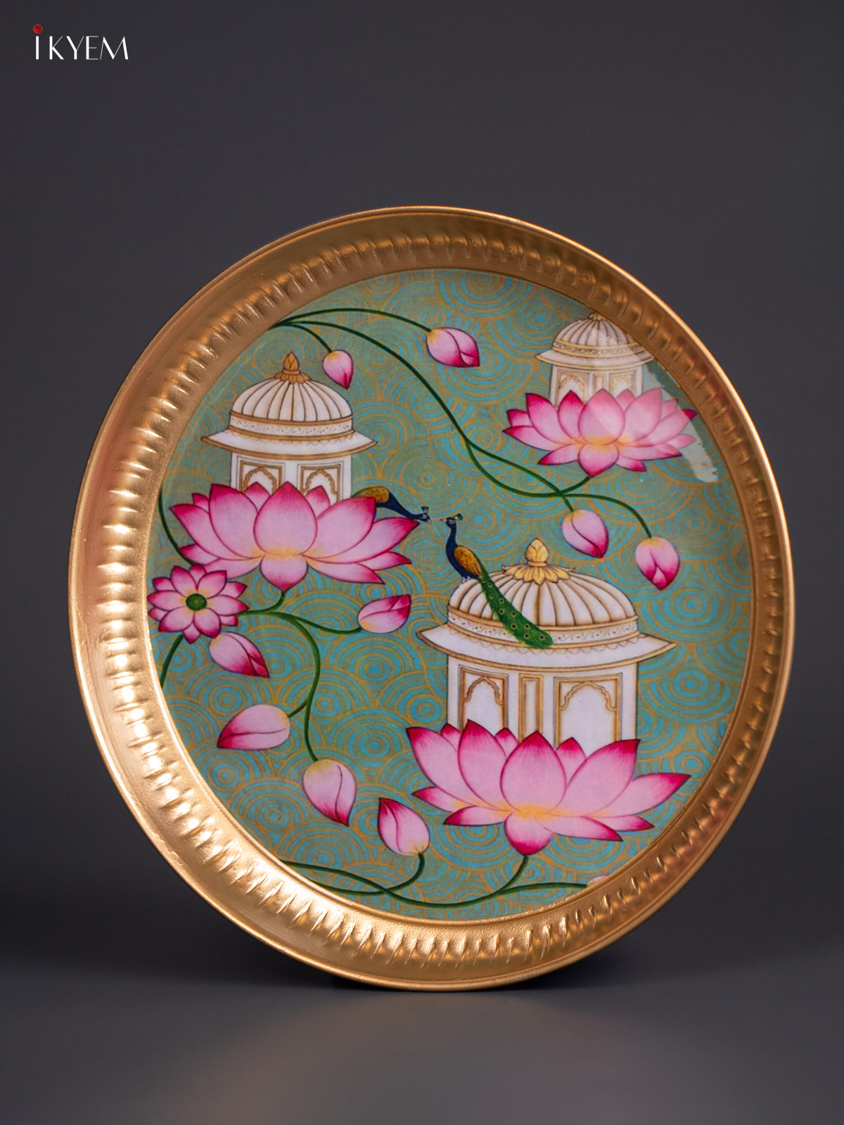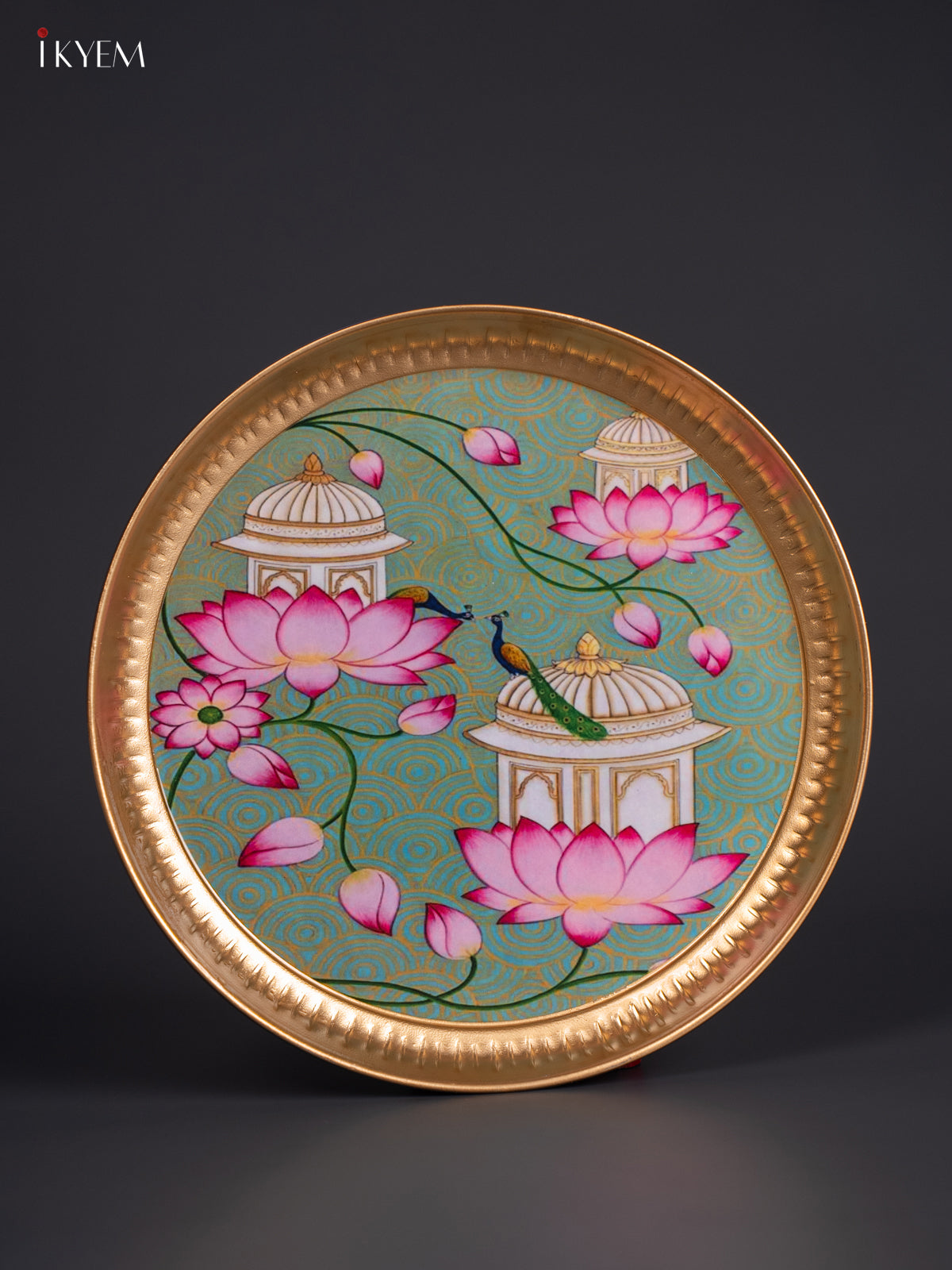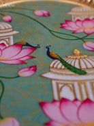 Lotus & Peacock Digital Printed Metal Plate - Green - KJ21123