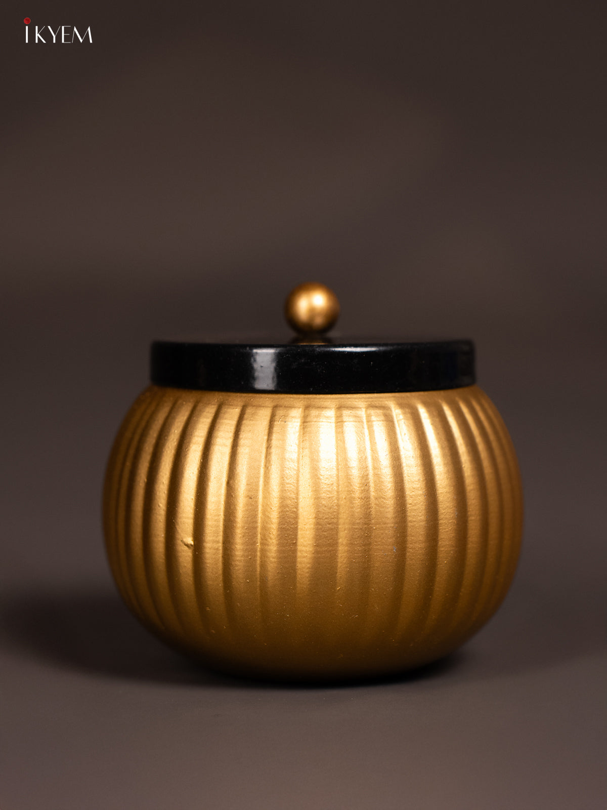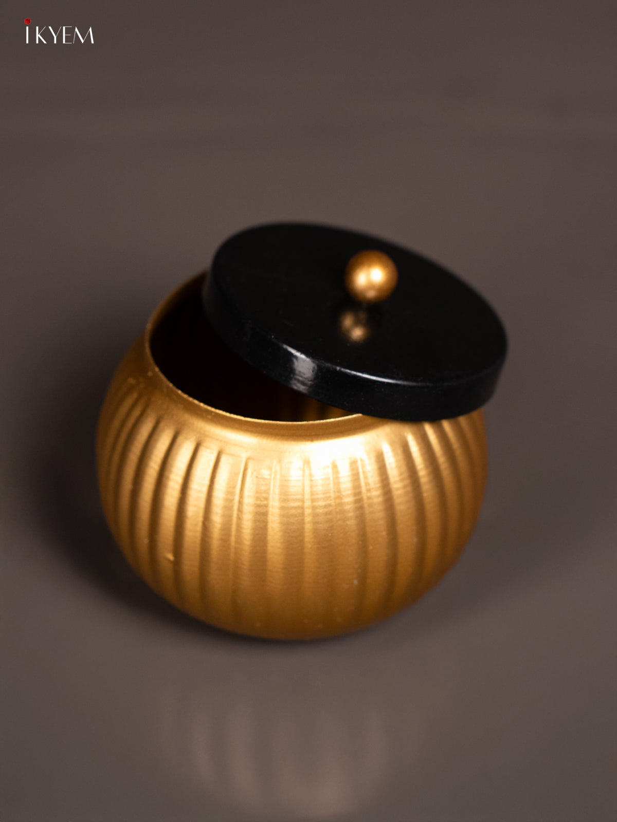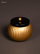 Gold Ribbed Metal Nuts Jar with Black Lid - KK01119