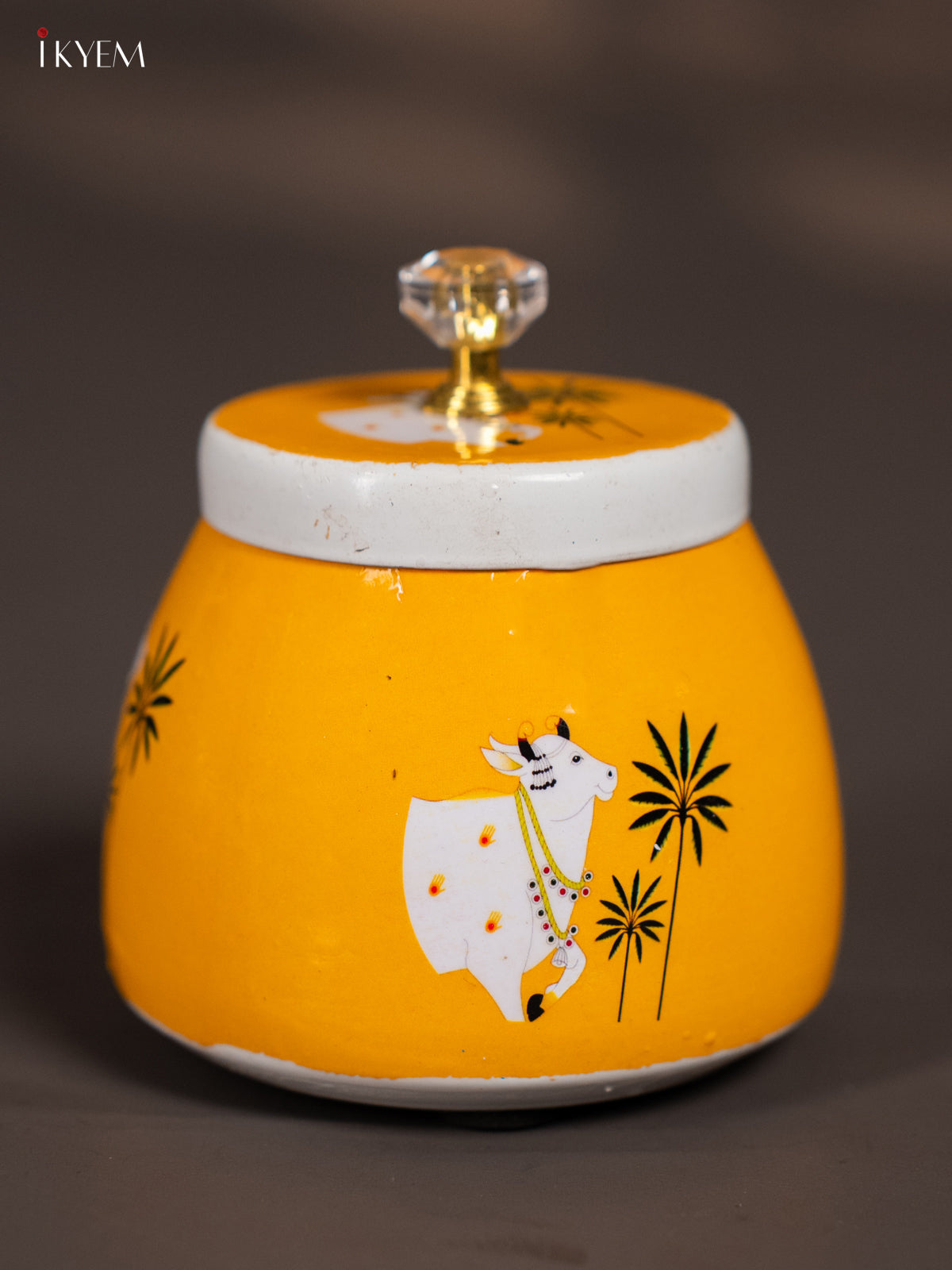 Yellow Digital Printed Cow & Calf Dry Fruit Jar – 4 Inch - KK01134