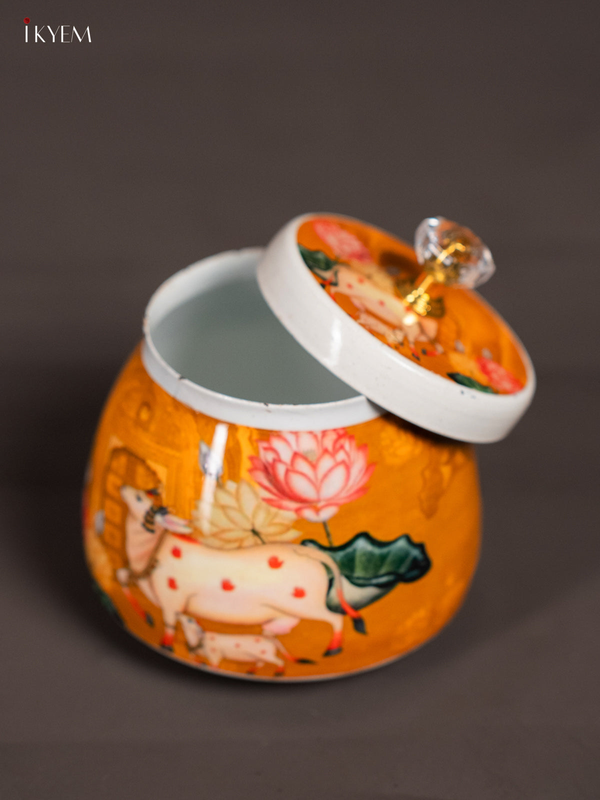 Cow & Calf Digital Printed Dryfruit Nuts Jar - Yellow - KK01138