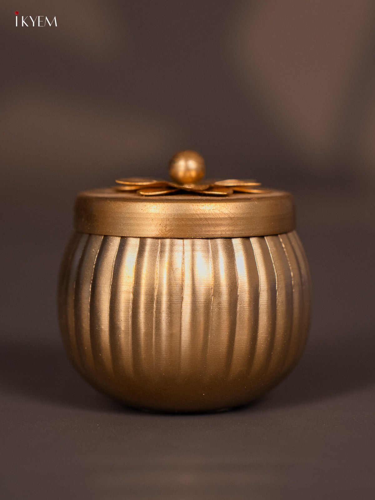 Upgrade your gifting style or organize your small essentials with this classy golden metal jar — a perfect blend of practicality and elegance.