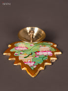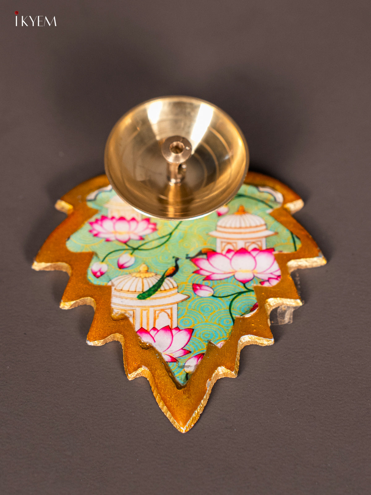 Leaf-Shaped Diya Holder with Lotus - Pastel Green - KK06128