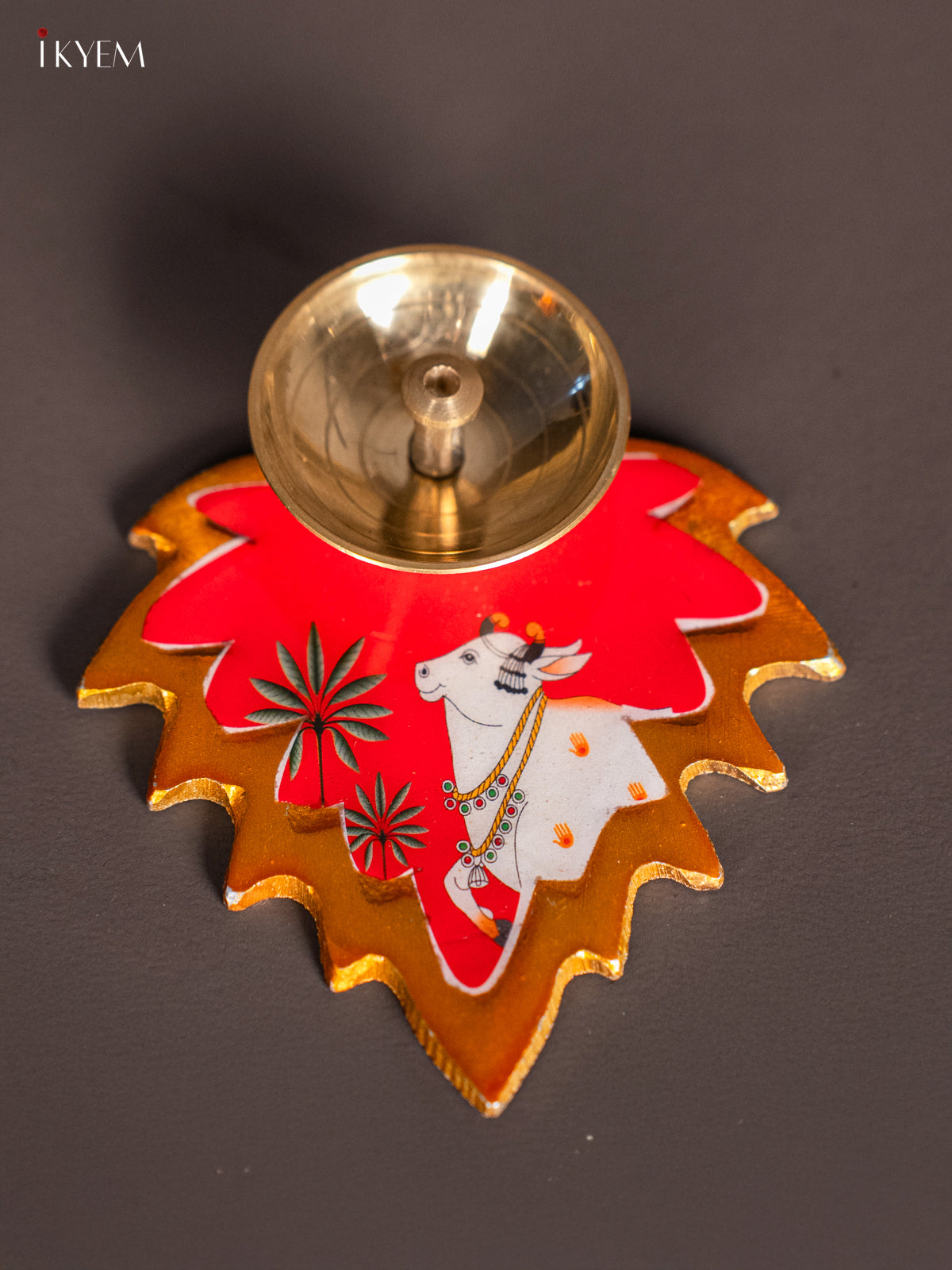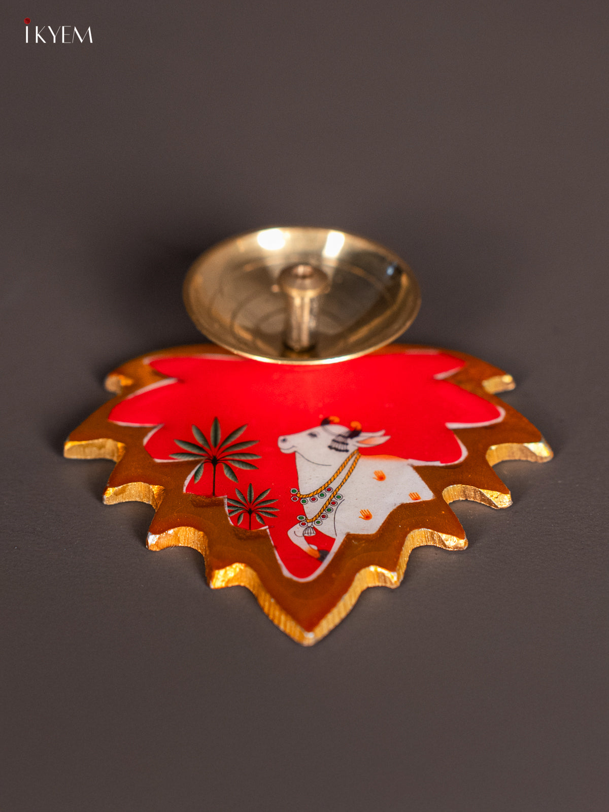 Leaf-Shaped Diya Holder with Cow – Red - KK06129