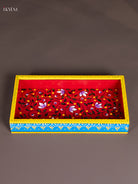 Hand-Painted Wooden Rectangular Tray - Red & Blue - (14×8) Inch - KN17116