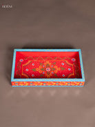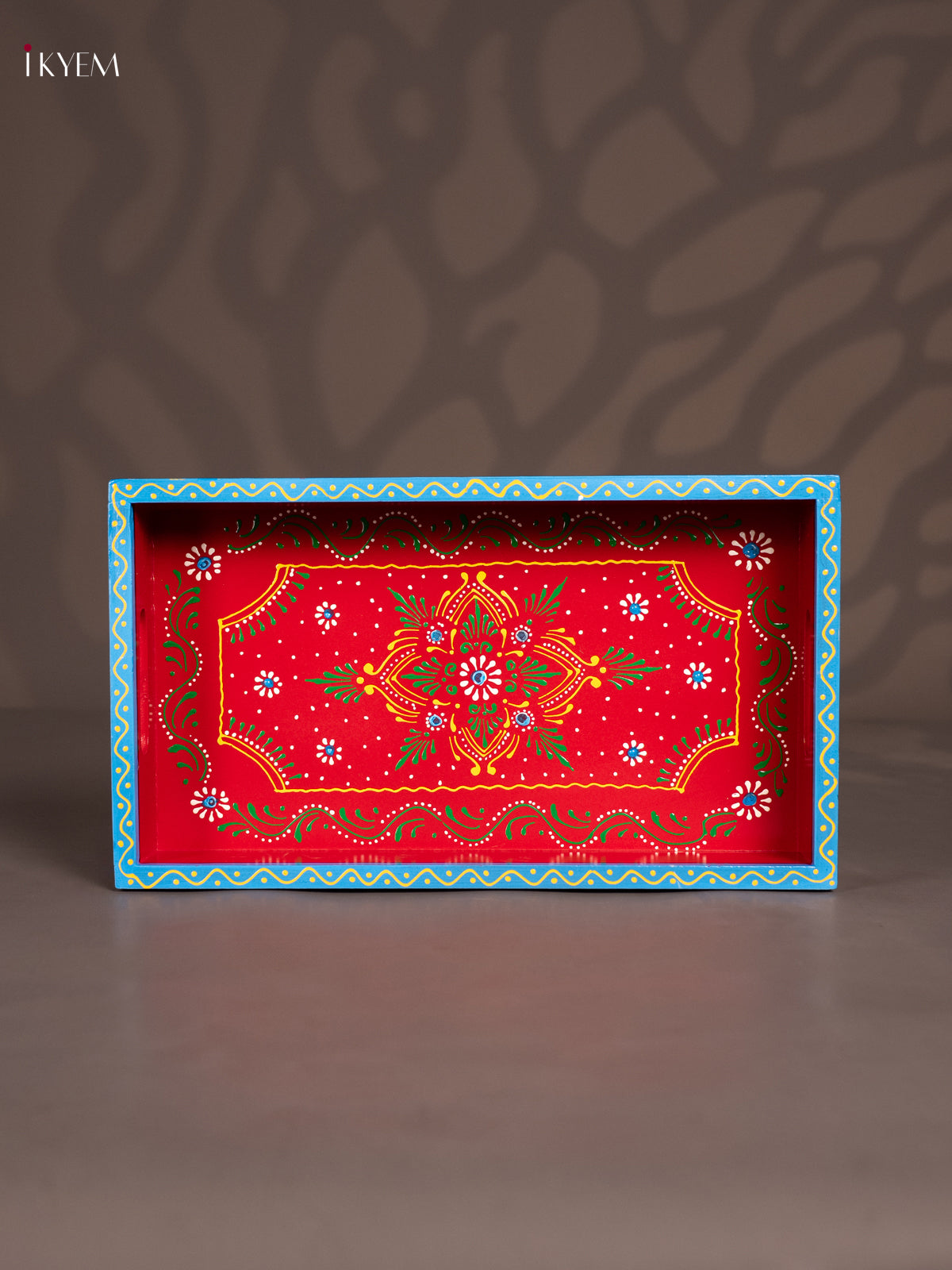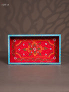 Hand-Painted Wooden Rectangular Tray - Red & Blue - (14×8) Inch - KN17118
