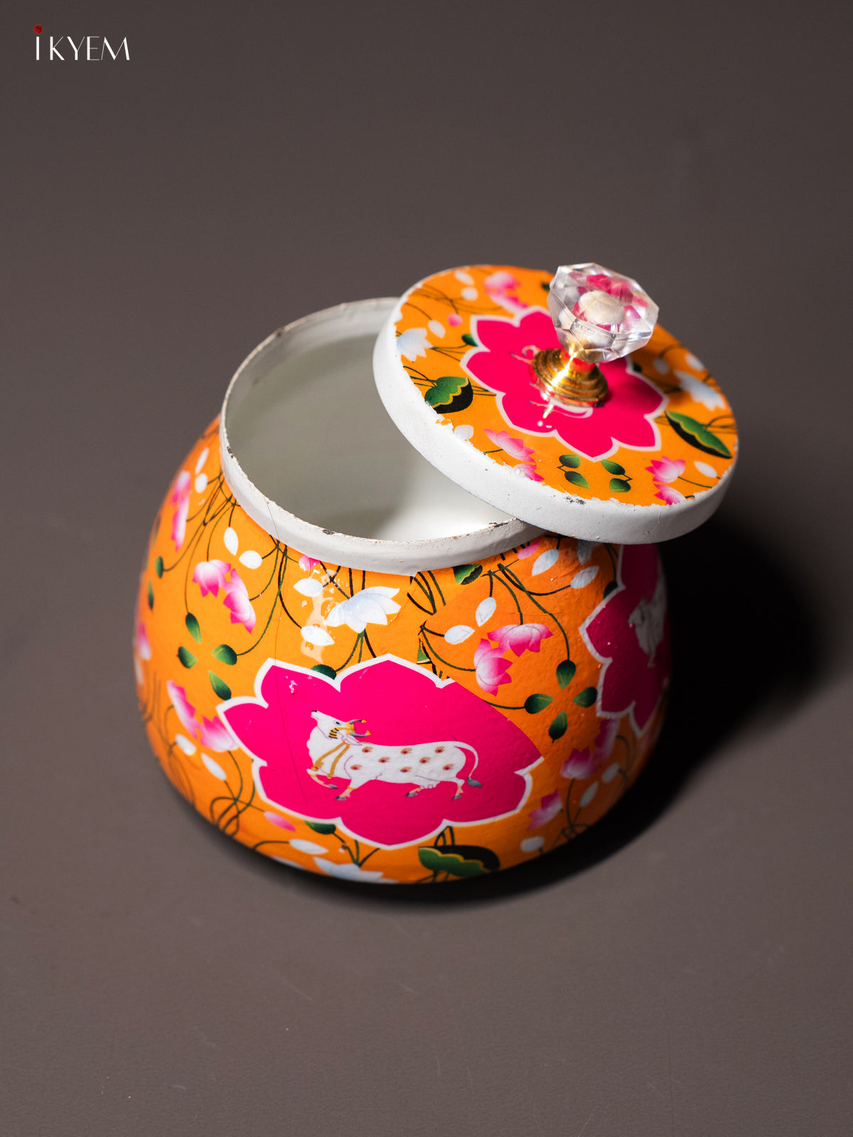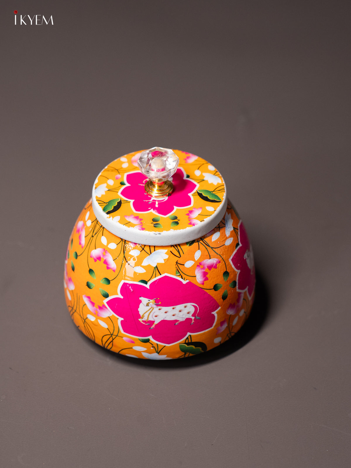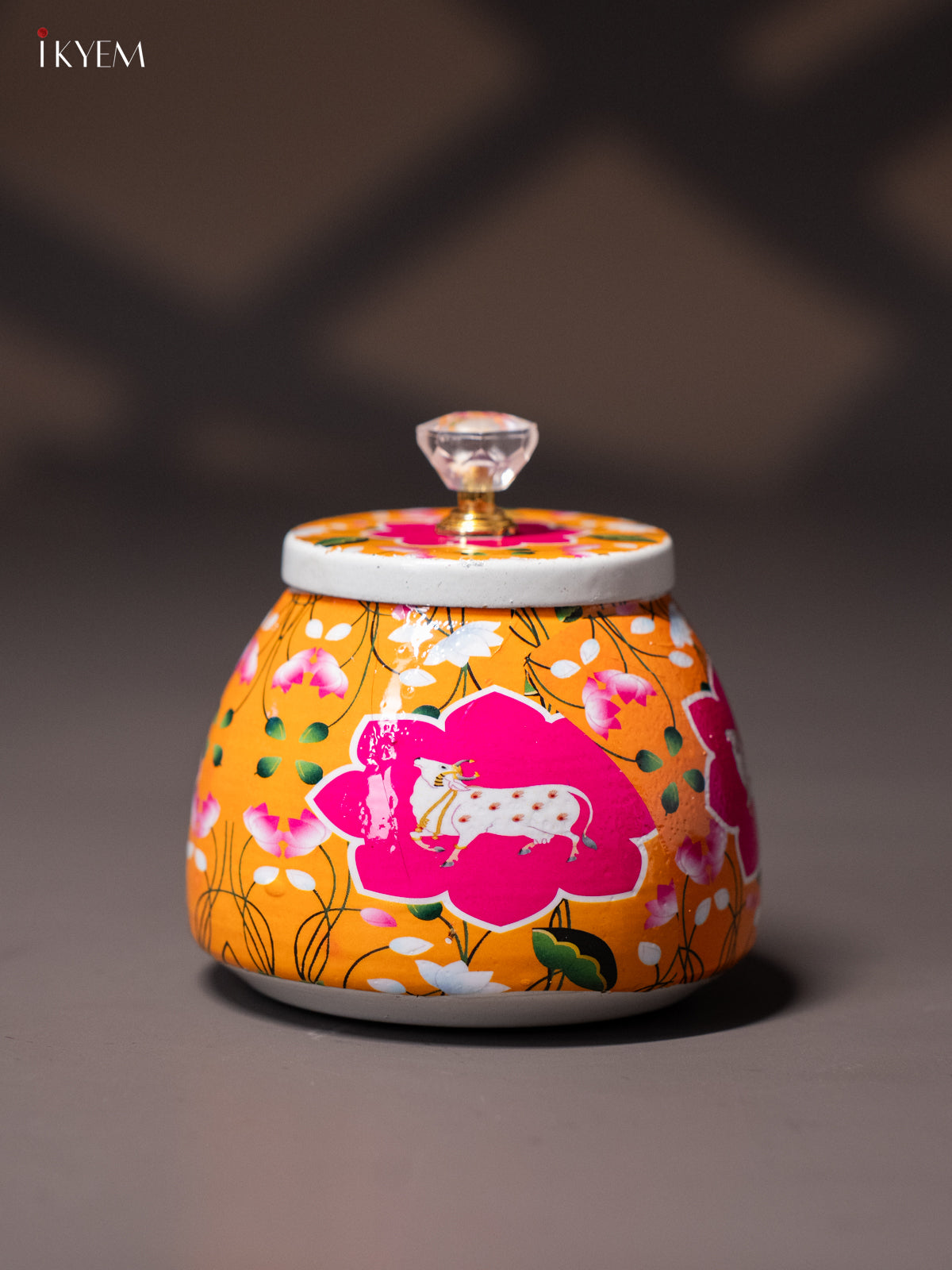 Elegant Pichwai Cow & Calf Printed Orange Dry Fruit Jar with Lid - KI15117