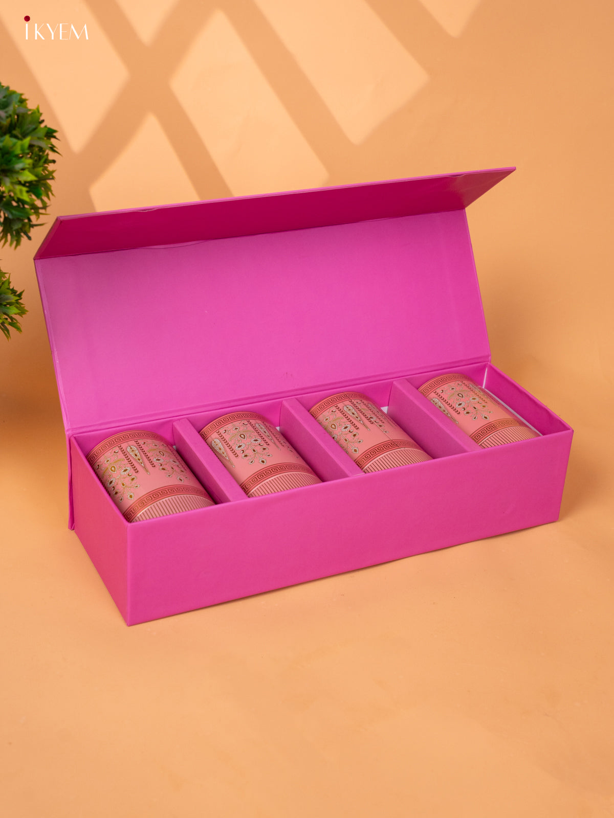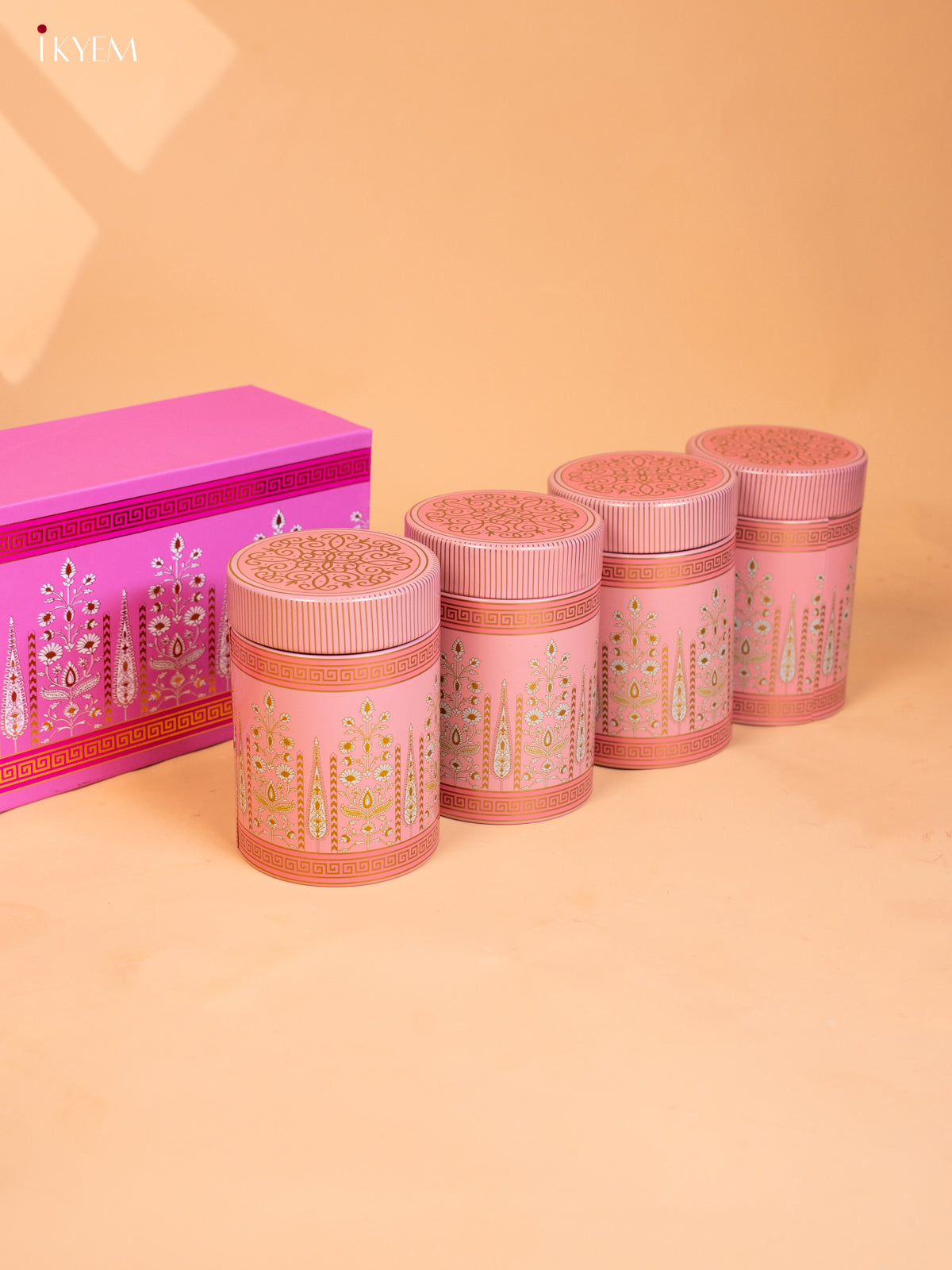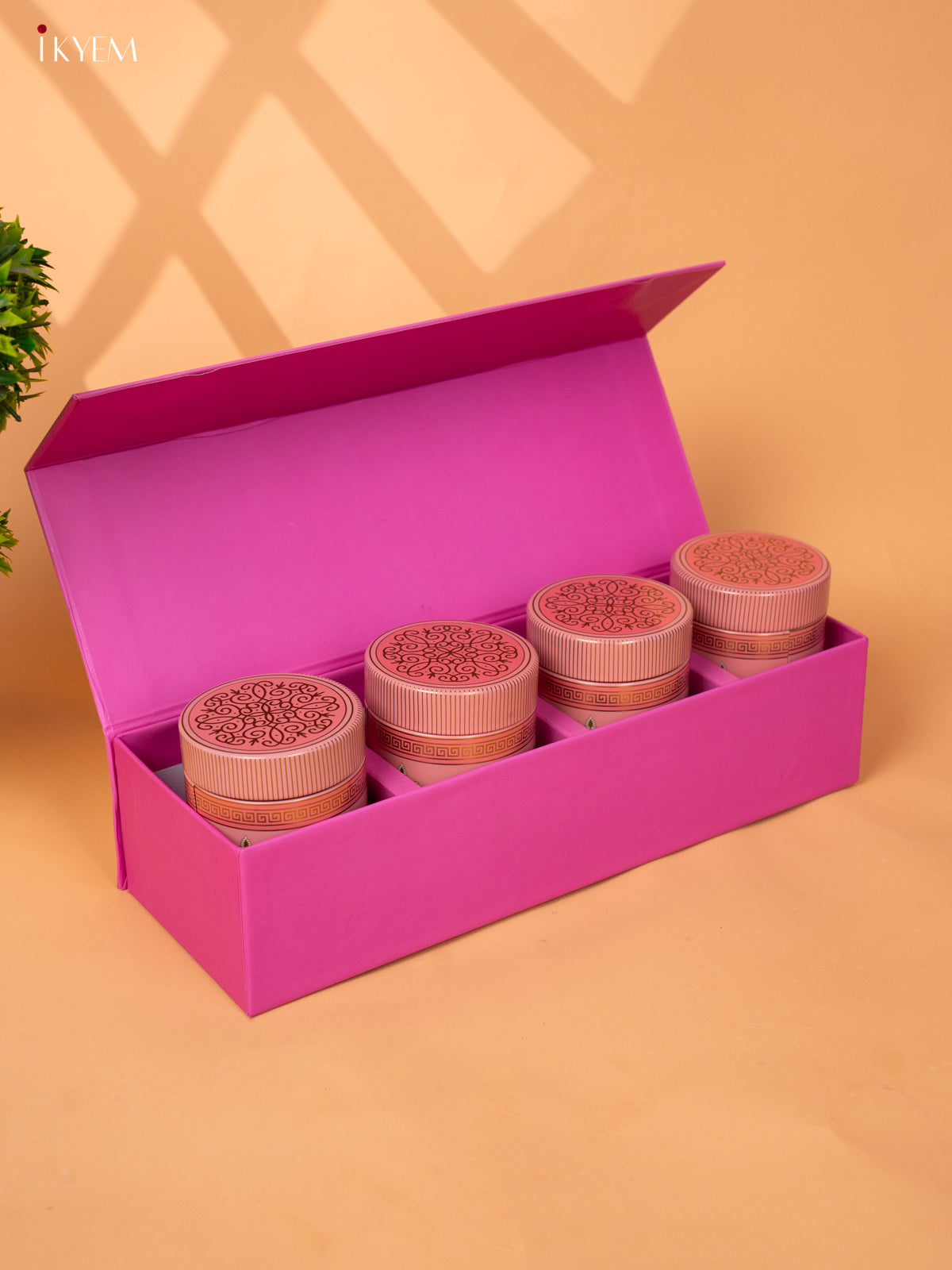 Pink Digital Printed Dry Fruit Hamper Box with 4 Big Jars - KB27129
