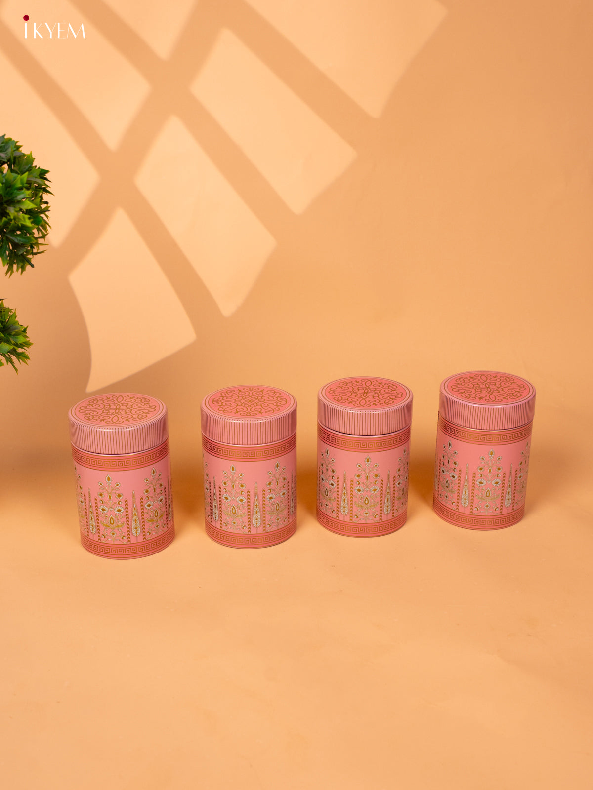 - Expertly crafted with a digital print, this Dry Fruit Hamper Box includes 4 small kitchen storage containers in a beautiful pink gift box.