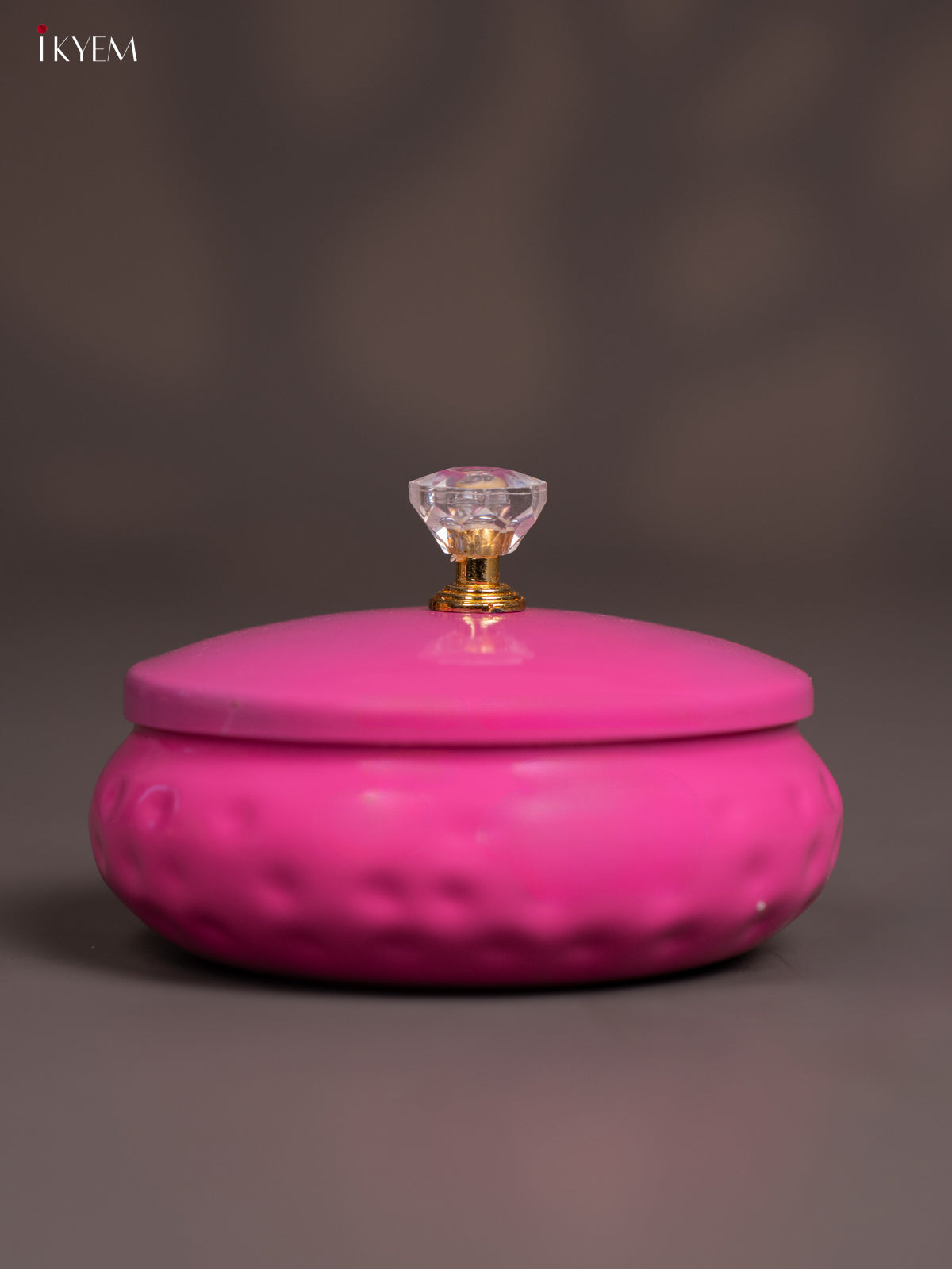 Add a touch of elegance to your space with this Metal dry fruit Jar, crafted in a radiant pink finish that blends functionality with beauty.