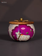 Chic Pichwai Cow Printed Purple Dry Fruit Jar with Wooden Lid - KI26112