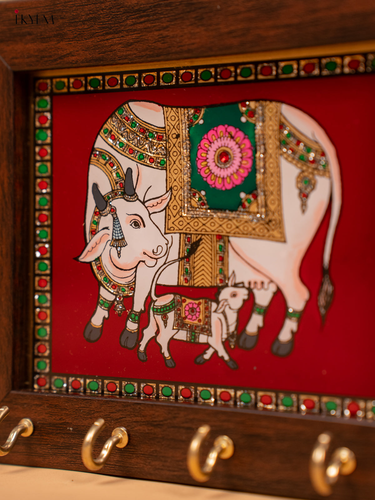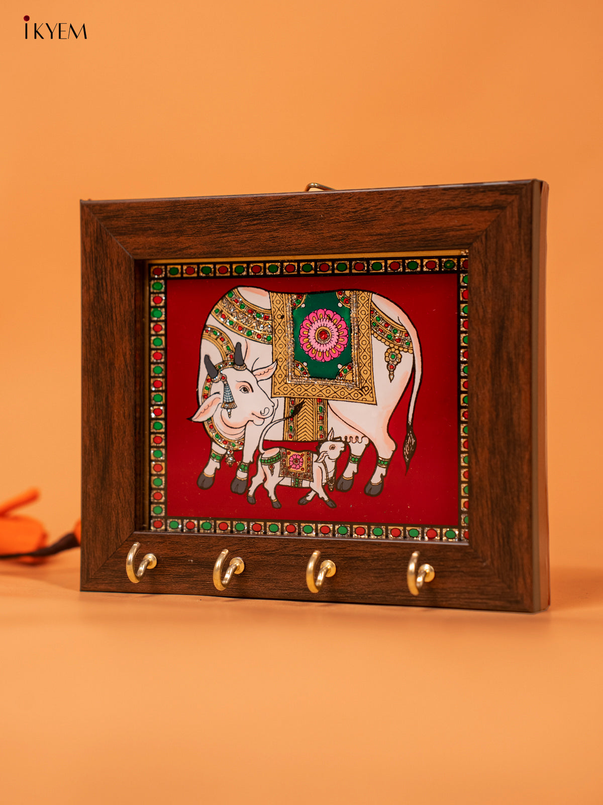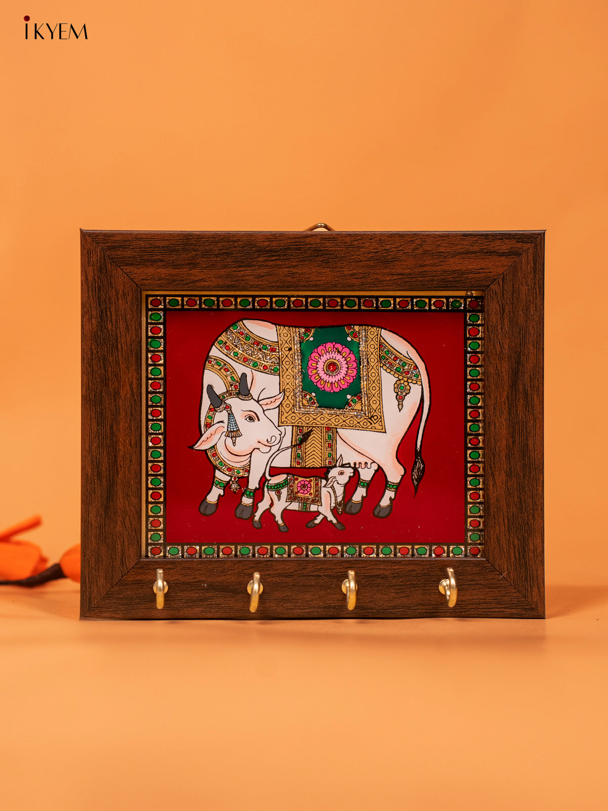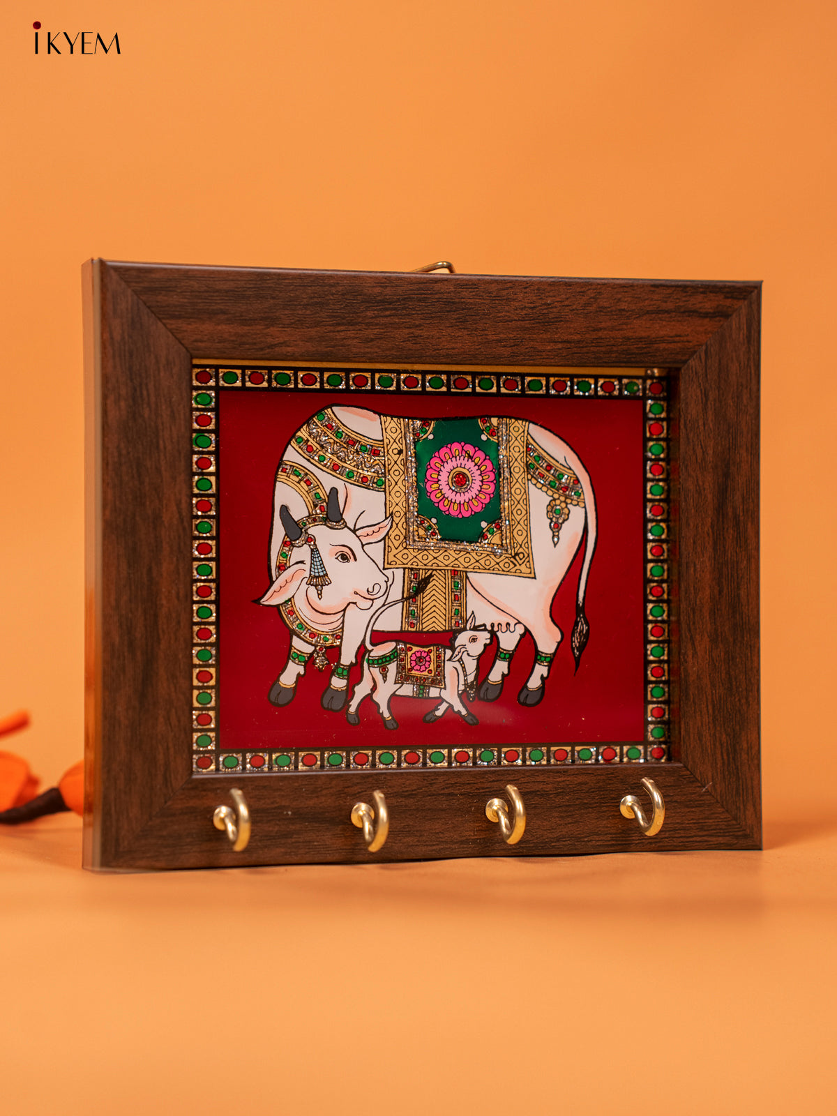 - Expertly crafted with reverse glass painting (5x6) Inches Key hanger features a vibrant Red Cow & Calf design.