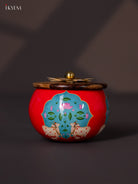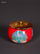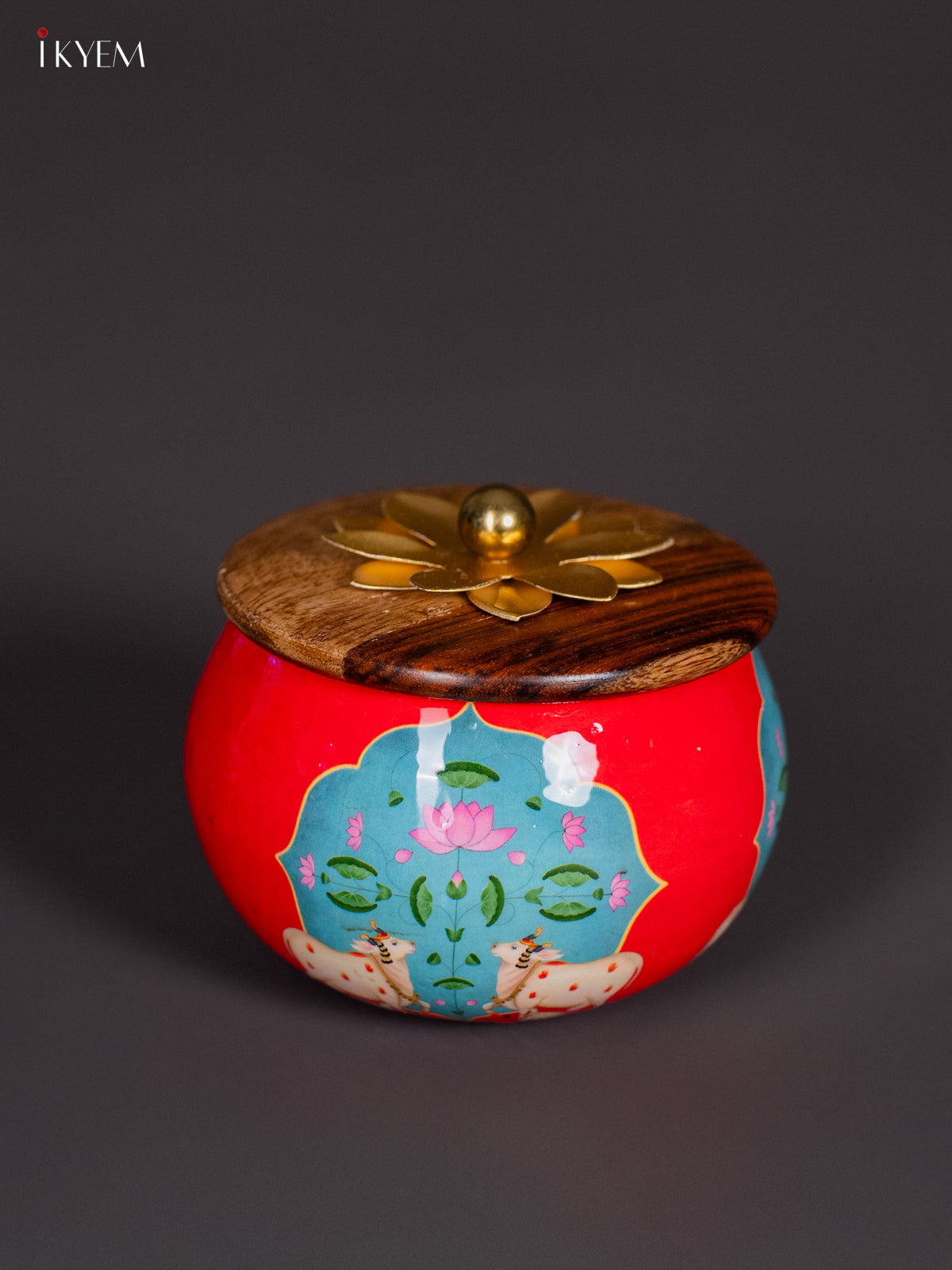 Stunning Pichwai Cow & Calf Printed Red Dry Fruit Jar with Wooden Lid - KI26114