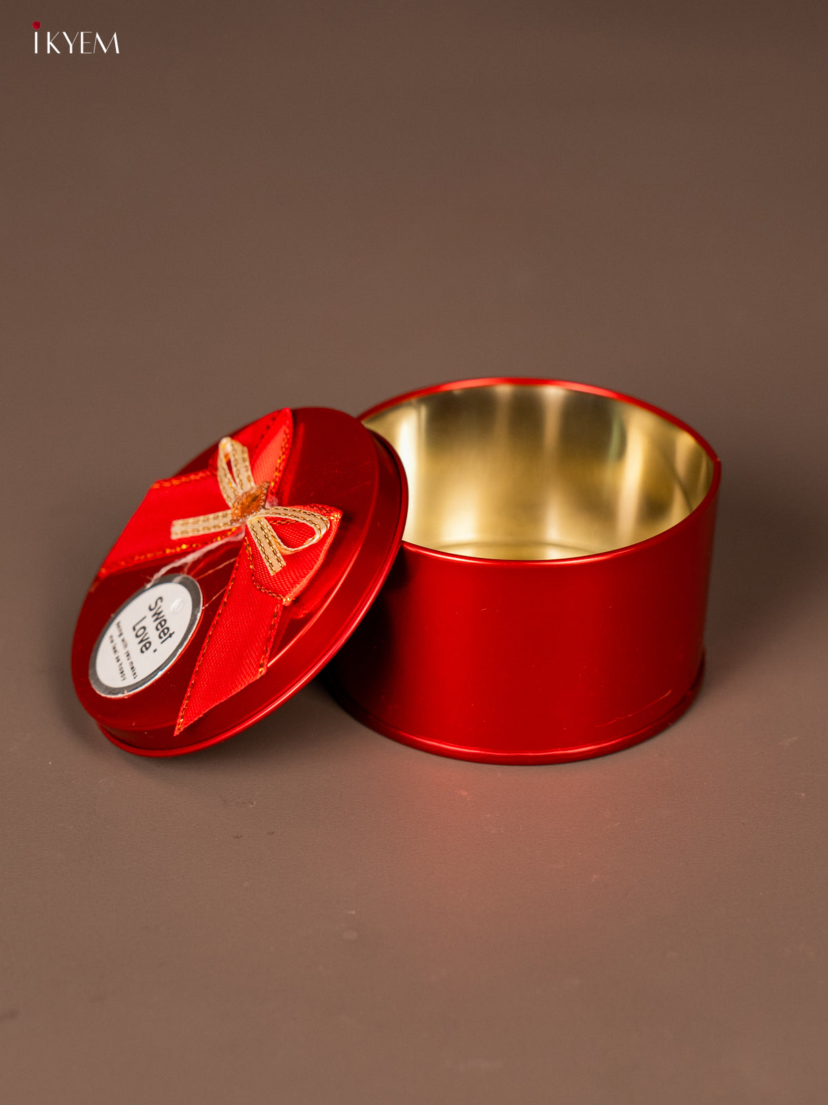 • Add charm and elegance to your celebrations with this Round, Red Decorative Tin Box. Designed for both utility and beauty, it is the perfect blend of style and practicality.