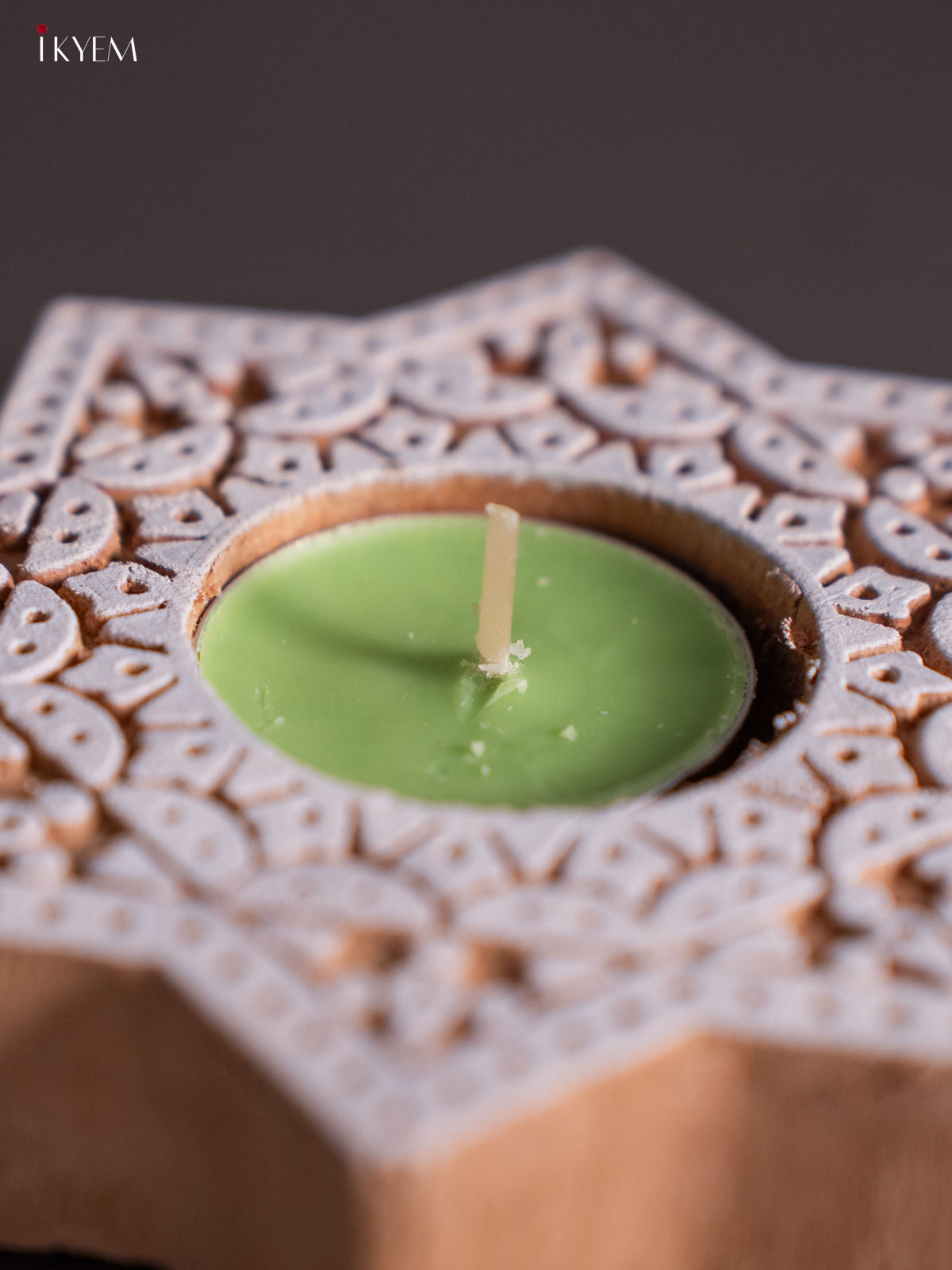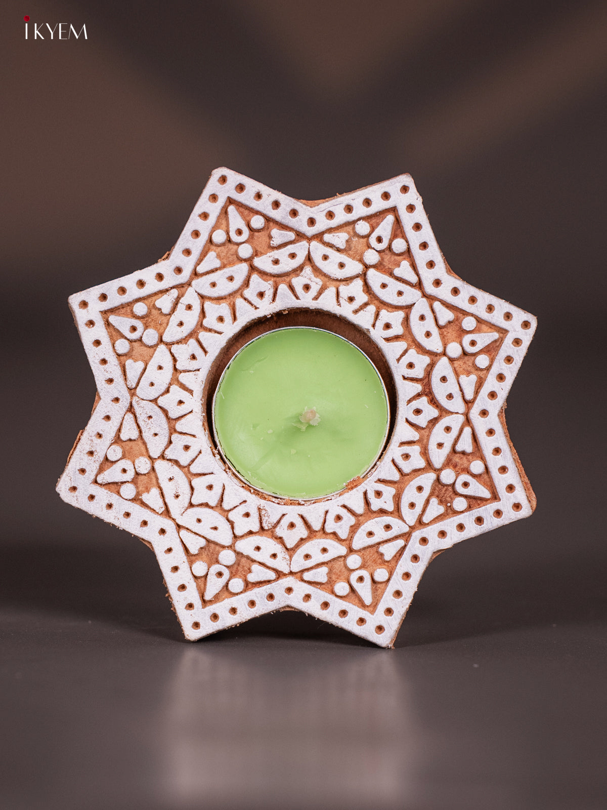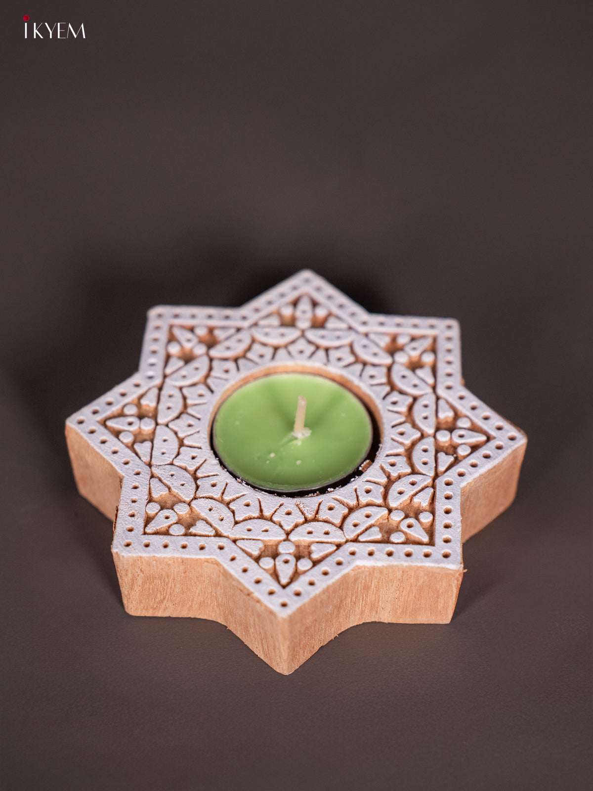 Pretty Kolam Shaped Wooden T light Candle Holders - KI12127